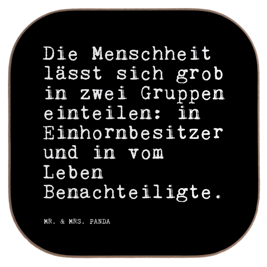 Quadratische Untersetzer Sprüche und Zitate Die Menschheit lässt sich grob in zwei Gruppen einteilen: in Einhornbesitzer und in vom Leben Benachteiligte. - Schwarz