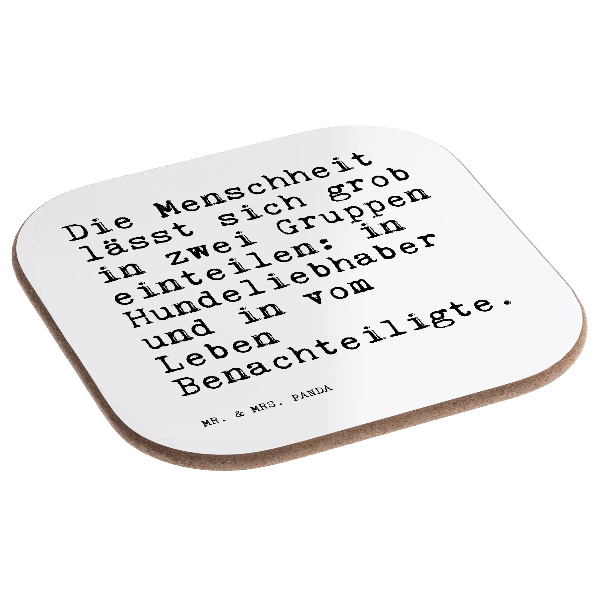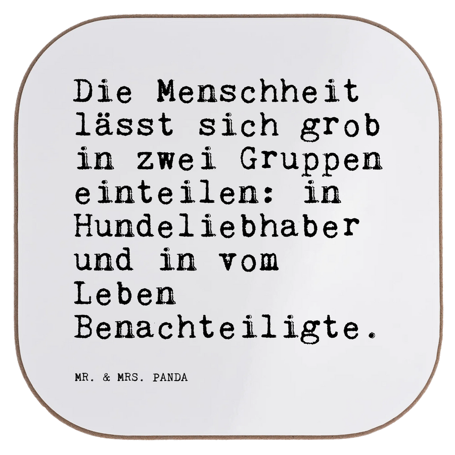 Quadratische Untersetzer Sprüche und Zitate Die Menschheit lässt sich grob in zwei Gruppen einteilen: in Hundeliebhaber und in vom Leben Benachteiligte. - Weiß