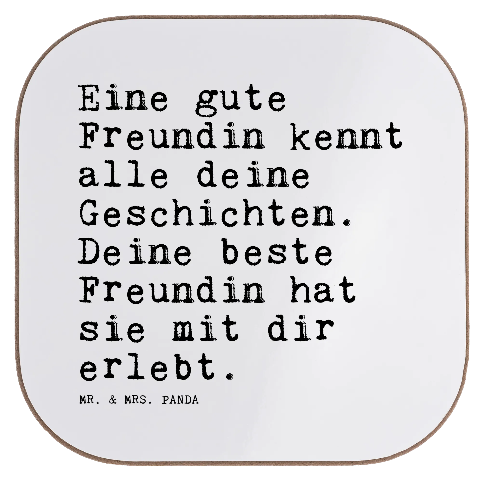 Quadratische Untersetzer Sprüche und Zitate Eine gute Freundin kennt alle deine Geschichten. Deine beste Freundin hat sie mit dir erlebt. - Weiß