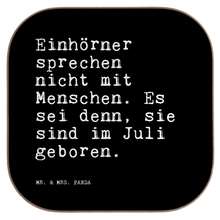 Quadratische Untersetzer Sprüche und Zitate Einhörner sprechen nicht mit Menschen. Es sei denn, sie sind im Juli geboren. - Schwarz