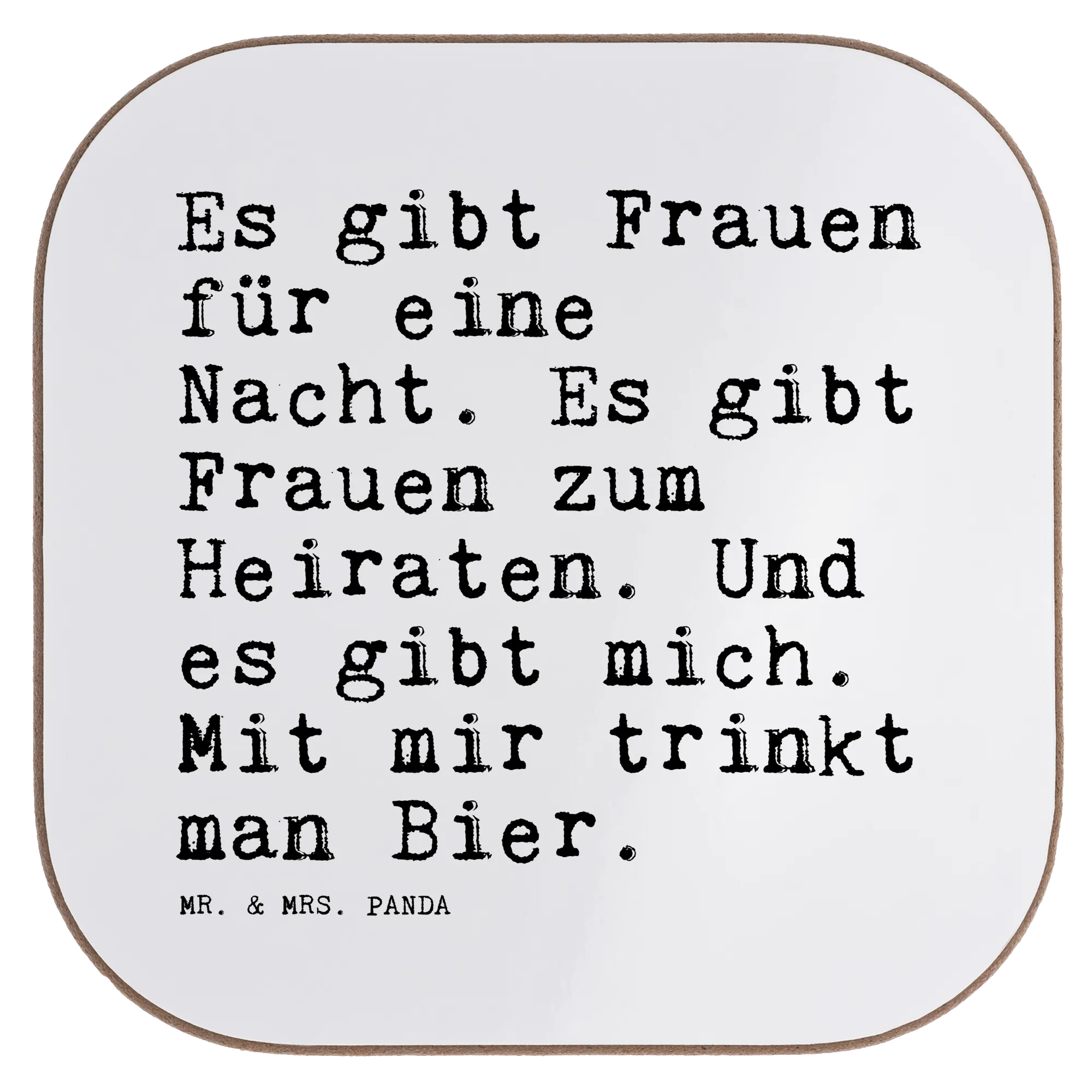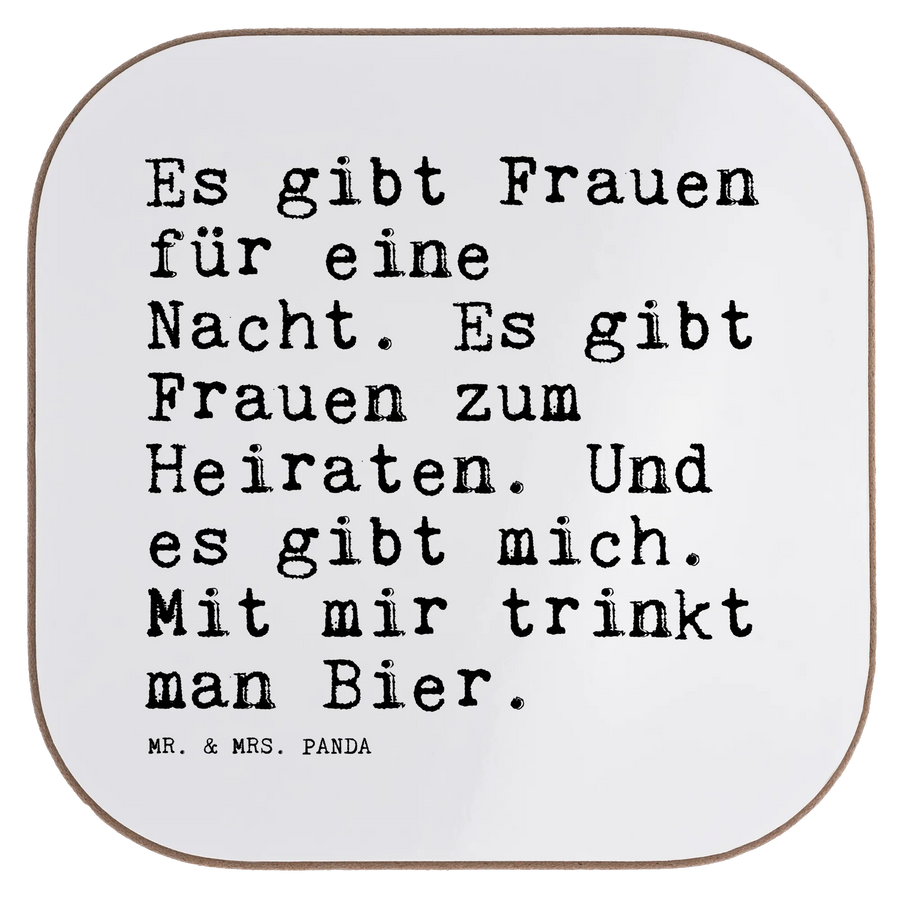 Quadratische Untersetzer Sprüche und Zitate Es gibt Frauen für eine Nacht. Es gibt Frauen zum Heiraten. Und es gibt mich. Mit mir trinkt man Bier. - Weiß