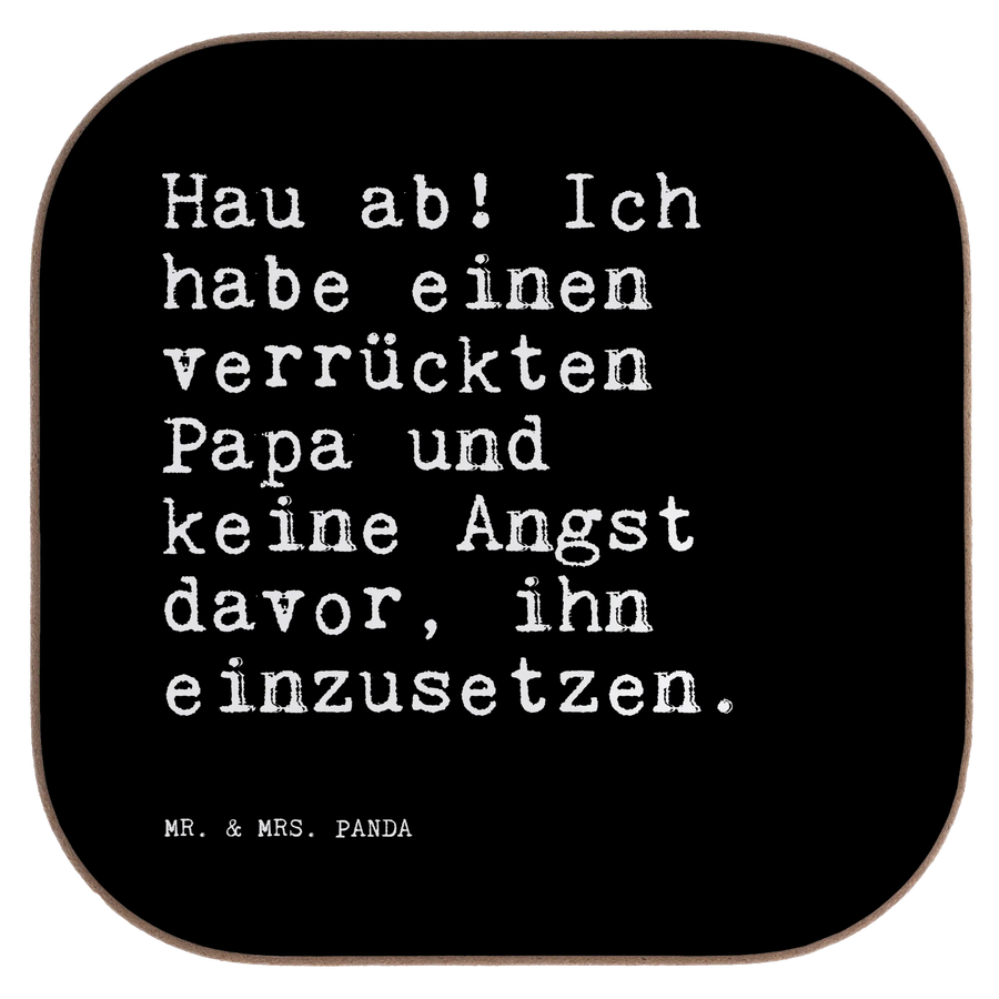 Quadratische Untersetzer Sprüche und Zitate Hau ab! Ich habe einen verrückten Papa und keine Angst davor, ihn einzusetzen. - Schwarz