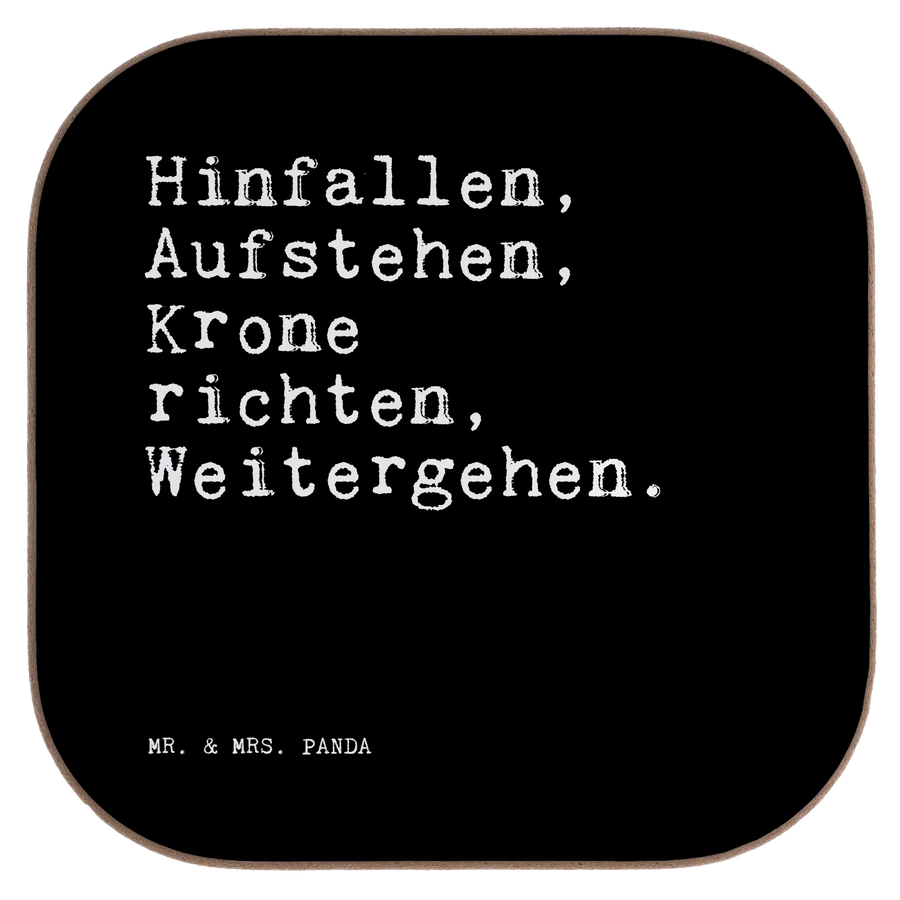 Quadratische Untersetzer Sprüche und Zitate Hinfallen, Aufstehen, Krone richten, Weitergehen. - Schwarz