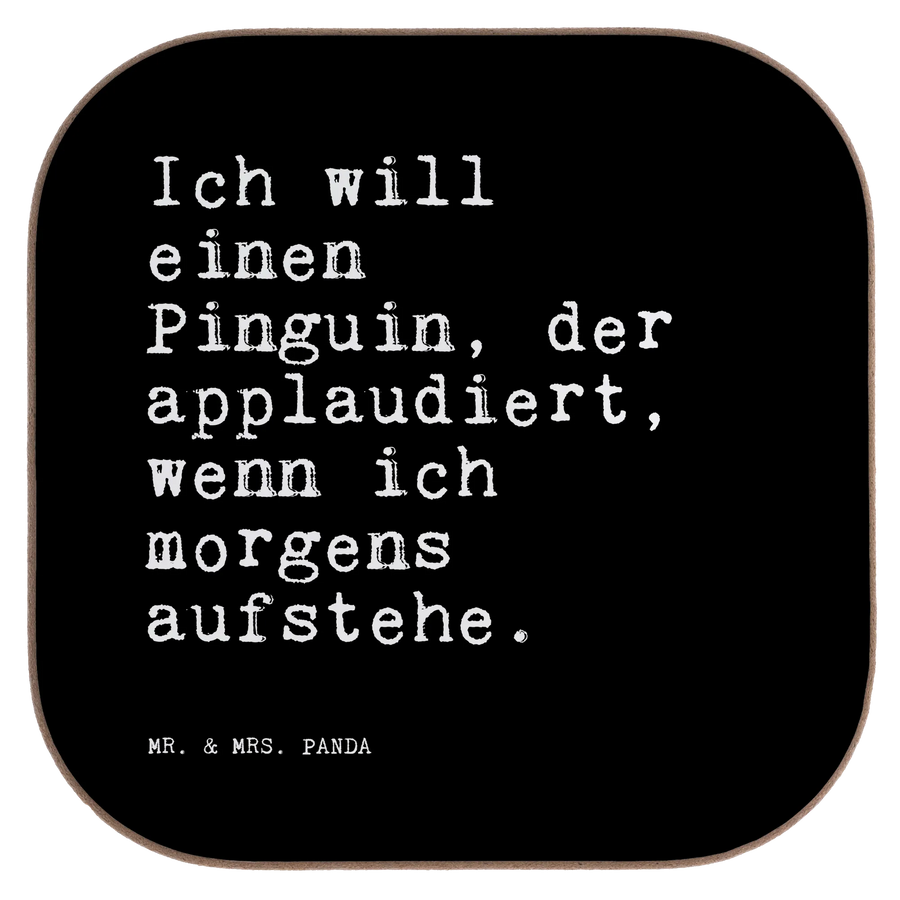 Quadratische Untersetzer Sprüche und Zitate Ich will einen Pinguin, der applaudiert, wenn ich morgens aufstehe. - Schwarz