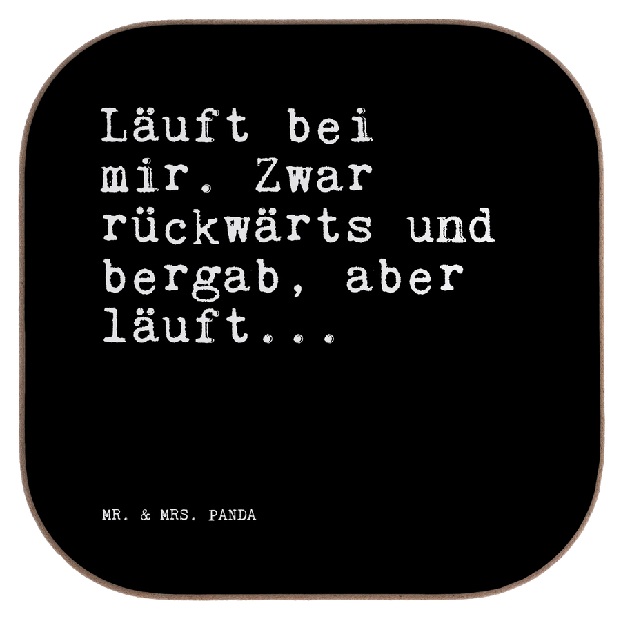 Quadratische Untersetzer Sprüche und Zitate Läuft bei mir. Zwar rückwärts und bergab, aber läuft... - Schwarz