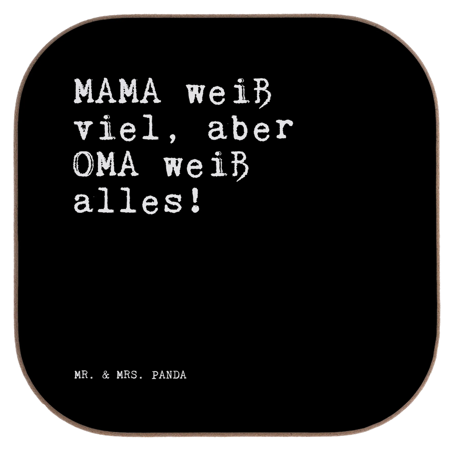 Quadratische Untersetzer Sprüche und Zitate MAMA weiß viel, aber OMA weiß alles! - Schwarz