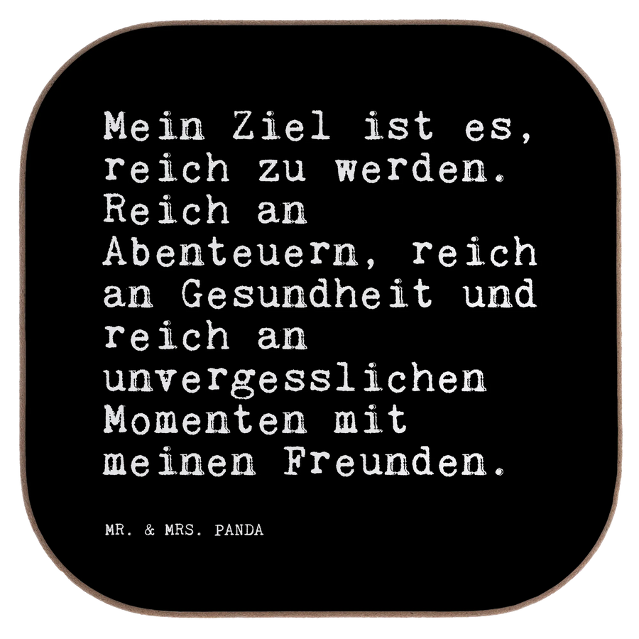Quadratische Untersetzer Sprüche und Zitate Mein Ziel ist es, reich zu werden. Reich an Abenteuern, reich an Gesundheit und reich an unvergesslichen Momenten mit meinen Freunden. - Schwarz