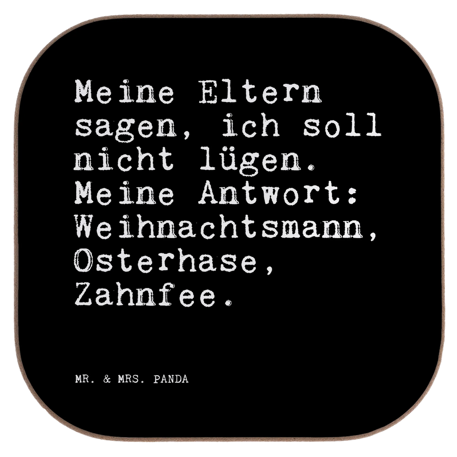 Quadratische Untersetzer Sprüche und Zitate Meine Eltern sagen, ich soll nicht lügen. Meine Antwort: Weihnachtsmann, Osterhase, Zahnfee. - Schwarz