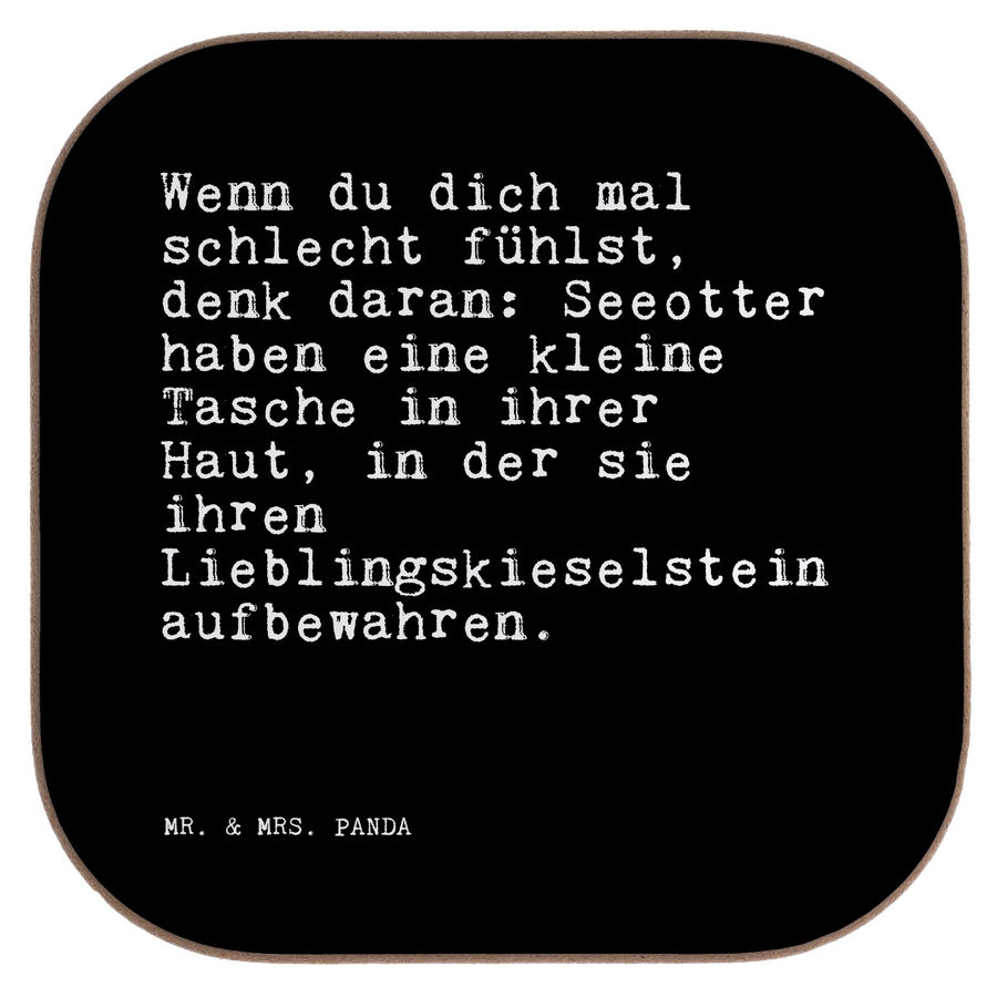 Quadratische Untersetzer Sprüche und Zitate Wenn du dich mal schlecht fühlst, denk daran: Seeotter haben eine kleine Tasche in ihrer Haut, in der sie ihren Lieblingskieselstein aufbewahren. - Schwarz