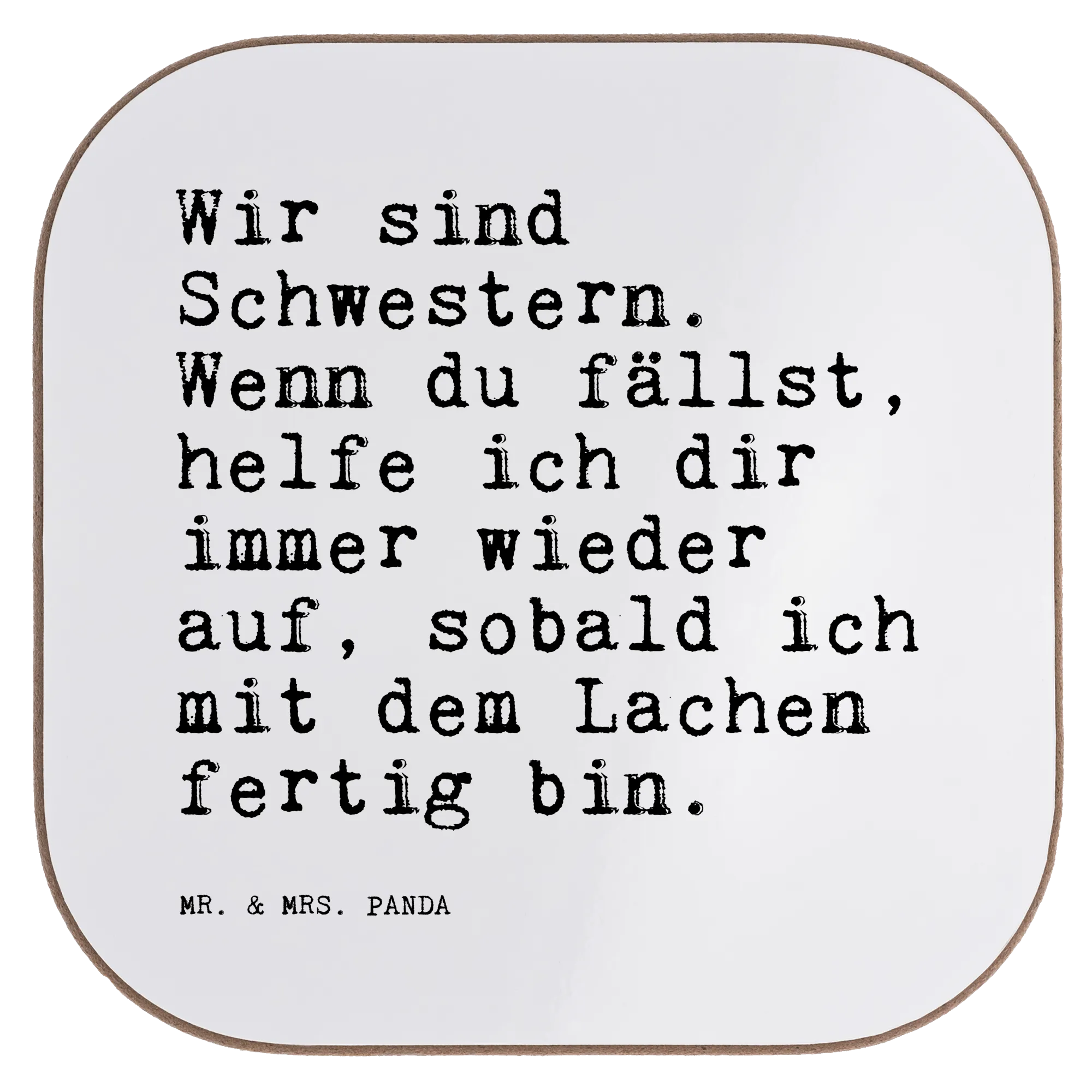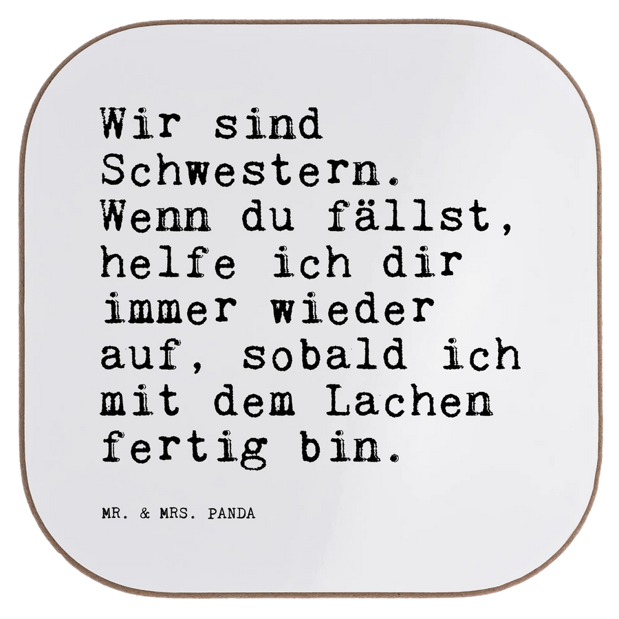 Du suchst nach dem perfekten Geschenk für deine Schwester oder beste Freundin? Der wunderschöne Untersetzer von Mr. & Mrs. Panda mit dem Spruch "Wir sind Schwestern. Wenn du fällst, helfe ich dir immer wieder auf, sobald ich mit dem Lachen fertig bin." ist genau das Richtige!