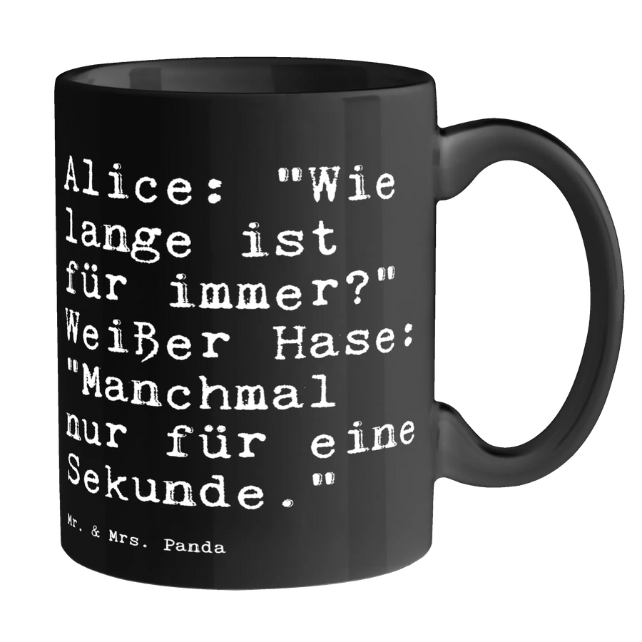 Tasse Sprüche und Zitate Alice: "Wie lange ist für immer?" Weißer Hase: "Manchmal nur für eine Sekunde." - Keramik Schwarz - Schwarz
