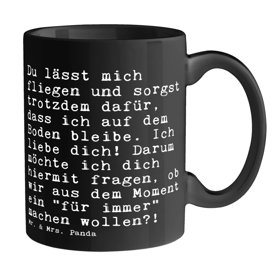 Tasse Sprüche und Zitate Du lässt mich fliegen und sorgst trotzdem dafür, dass ich auf dem Boden bleibe. Ich liebe dich! Darum möchte ich dich hiermit fragen, ob wir aus dem Moment ein "für immer" machen wollen?! - Keramik Schwarz - Schwarz