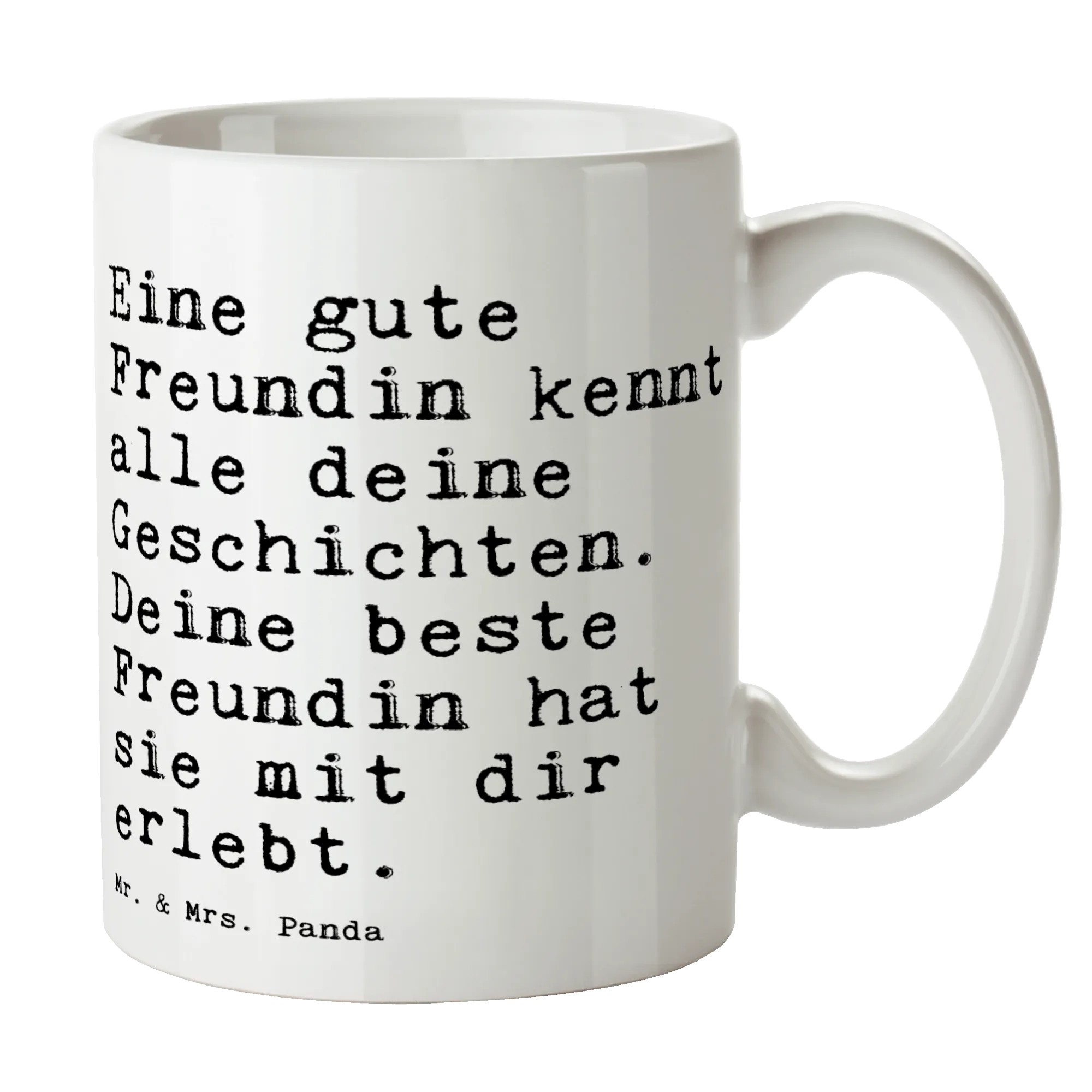 Tasse Sprüche und Zitate Eine gute Freundin kennt alle deine Geschichten. Deine beste Freundin hat sie mit dir erlebt. - Keramik - Weiß