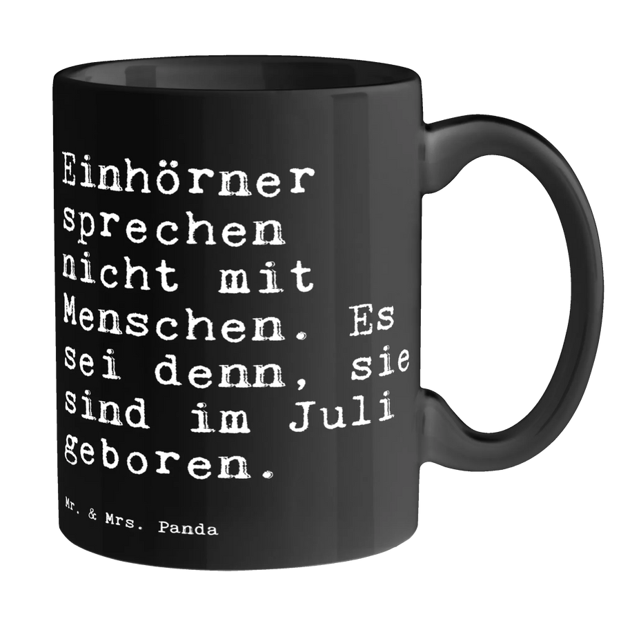 Tasse Sprüche und Zitate Einhörner sprechen nicht mit Menschen. Es sei denn, sie sind im Juli geboren. - Keramik Schwarz - Schwarz