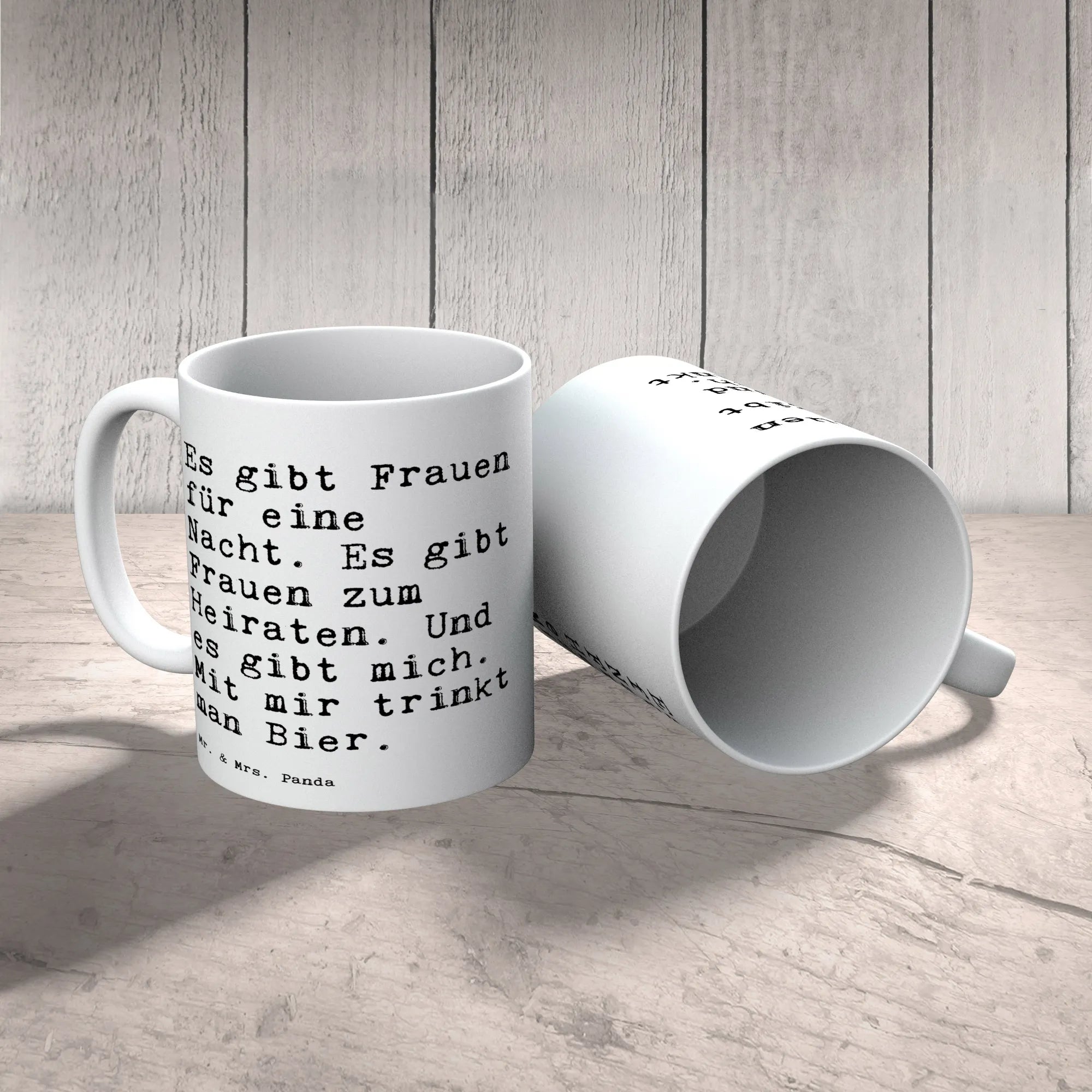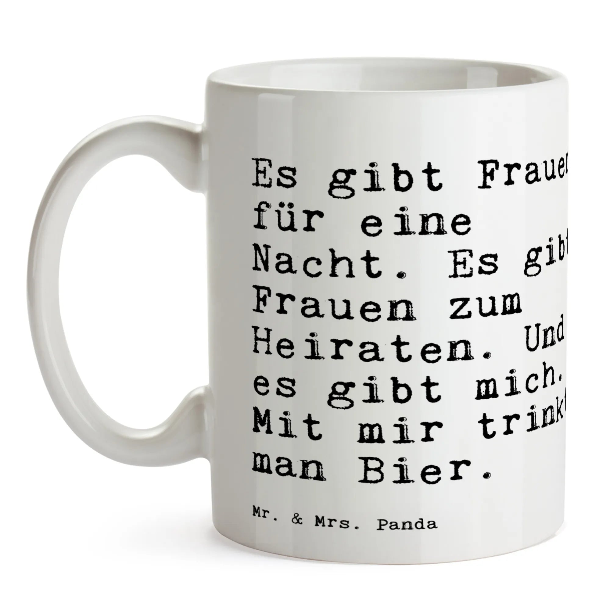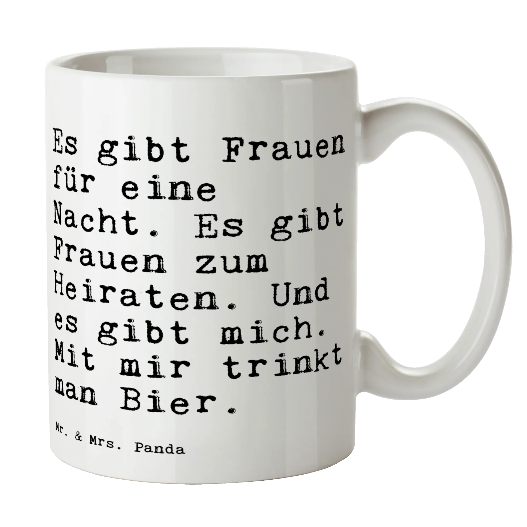Tasse Sprüche und Zitate Es gibt Frauen für eine Nacht. Es gibt Frauen zum Heiraten. Und es gibt mich. Mit mir trinkt man Bier. - Keramik - Weiß