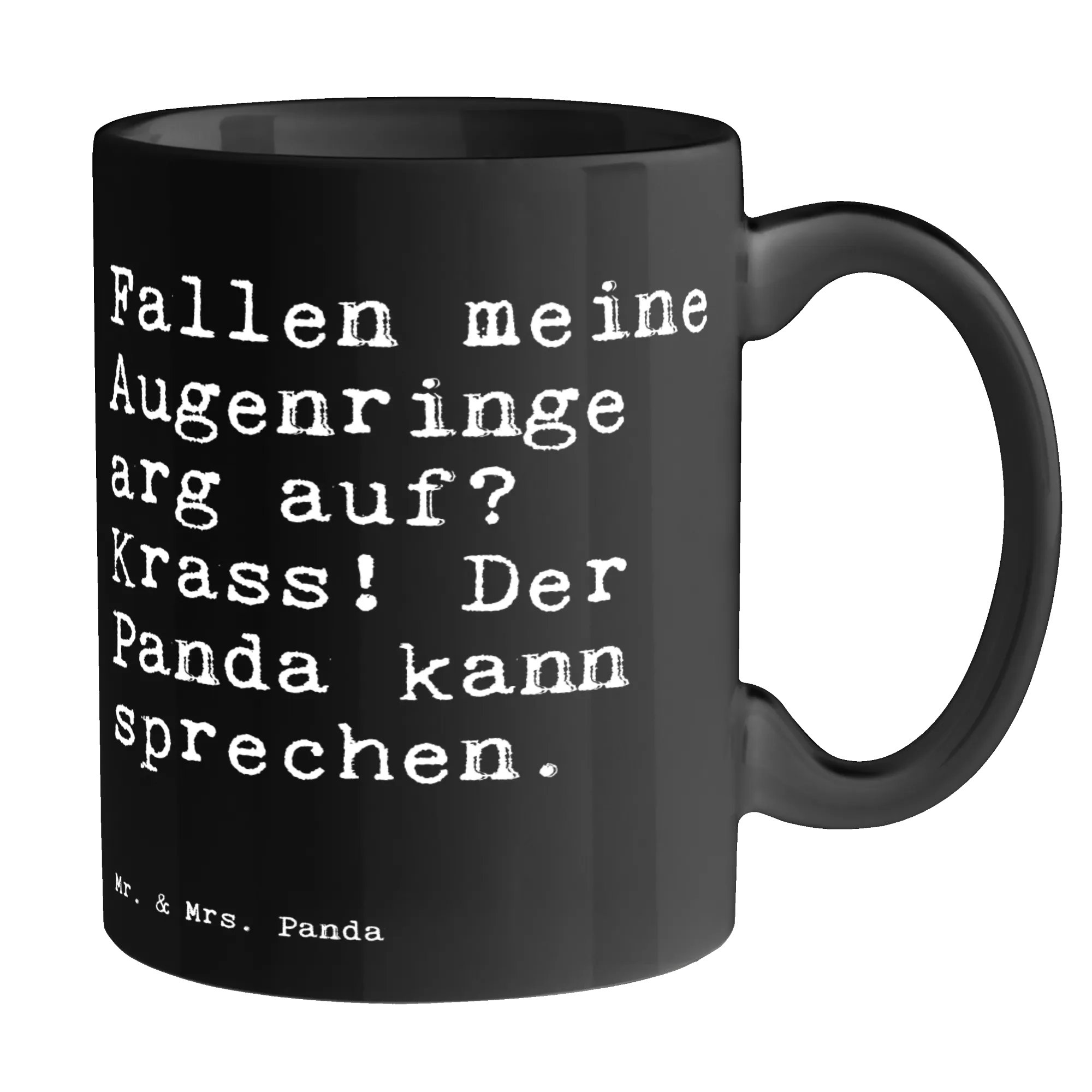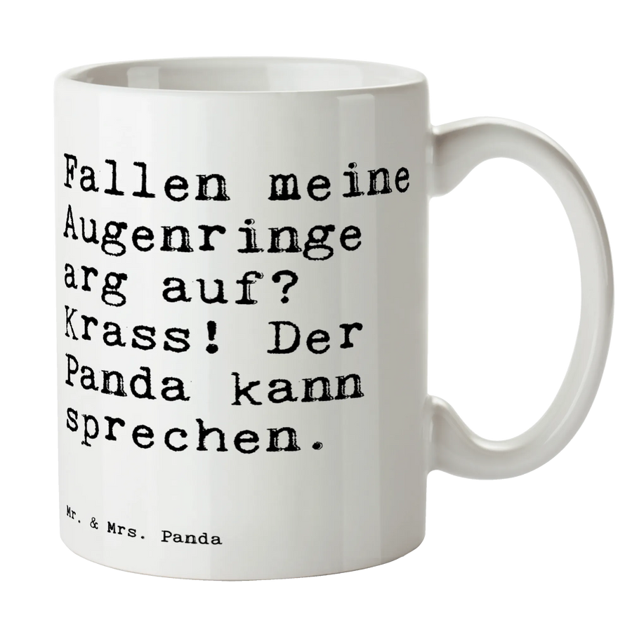 Die Tasse "Fallen meine Augenringe arg auf? Krass! Der Panda kann sprechen." von Mr. & Mrs. Panda ist nicht nur ein einfacher Becher – sie ist dein treuer Begleiter in hektischen Zeiten! Diese wunderschöne, spülmaschinenfeste Keramiktasse bringt ein Lächeln auf dein Gesicht, selbst wenn der Kaffee oder Tee mal etwas stärker sein muss, um die Müdigkeit zu vertreiben.