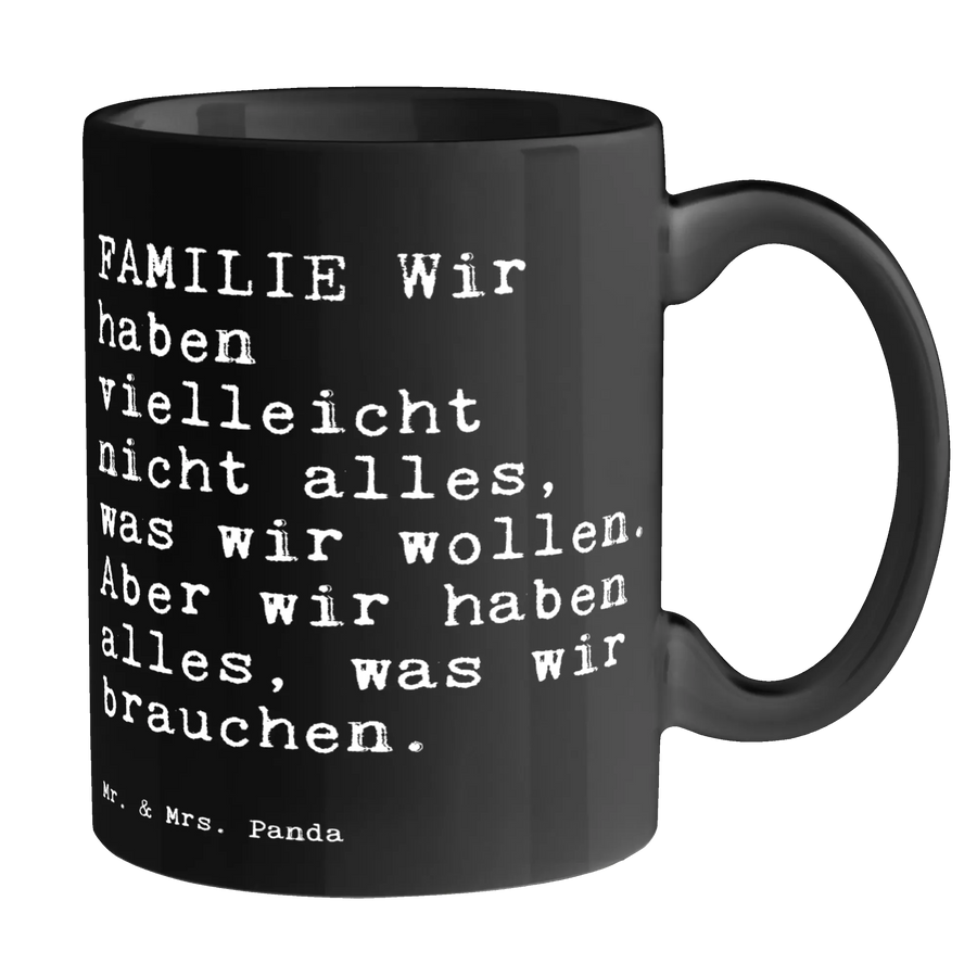Tasse Sprüche und Zitate FAMILIE Wir haben vielleicht nicht alles, was wir wollen. Aber wir haben alles, was wir brauchen. - Keramik Schwarz - Schwarz