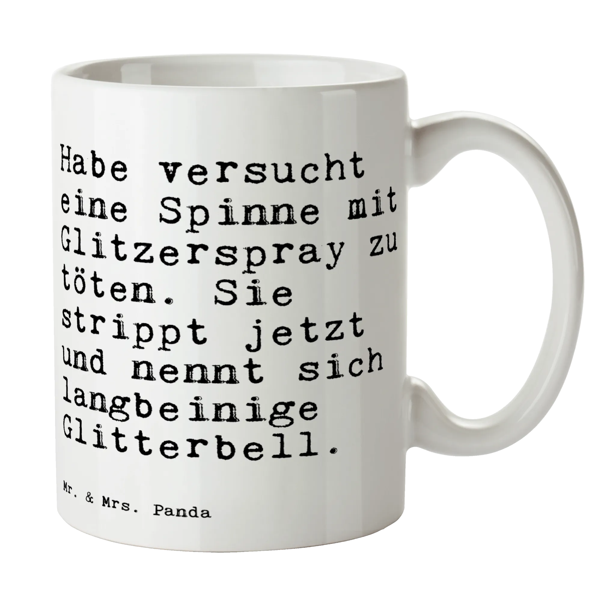 Tasse Sprüche und Zitate Habe versucht eine Spinne mit Glitzerspray zu töten. Sie strippt jetzt und nennt sich langbeinige Glitterbell. - Keramik - Weiß