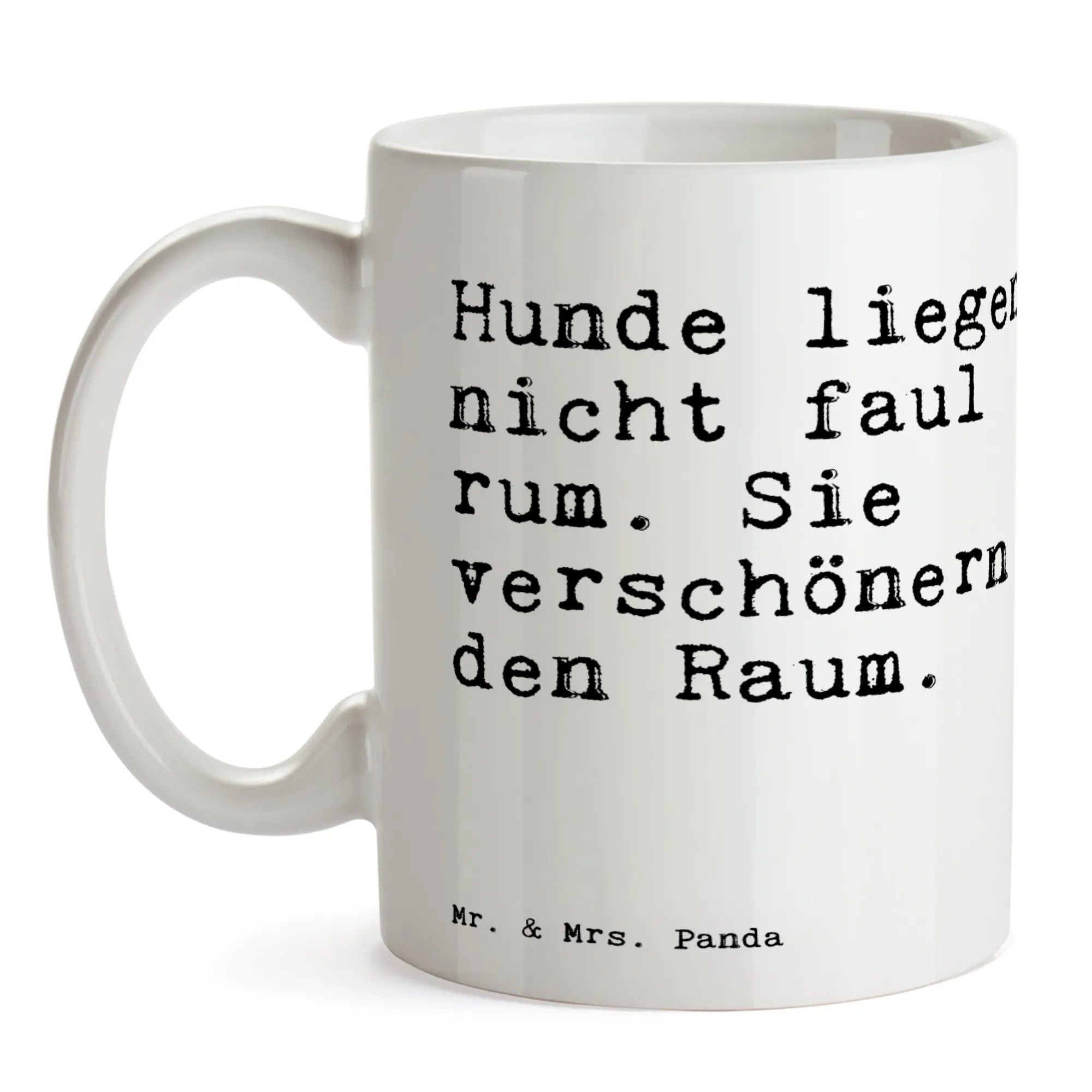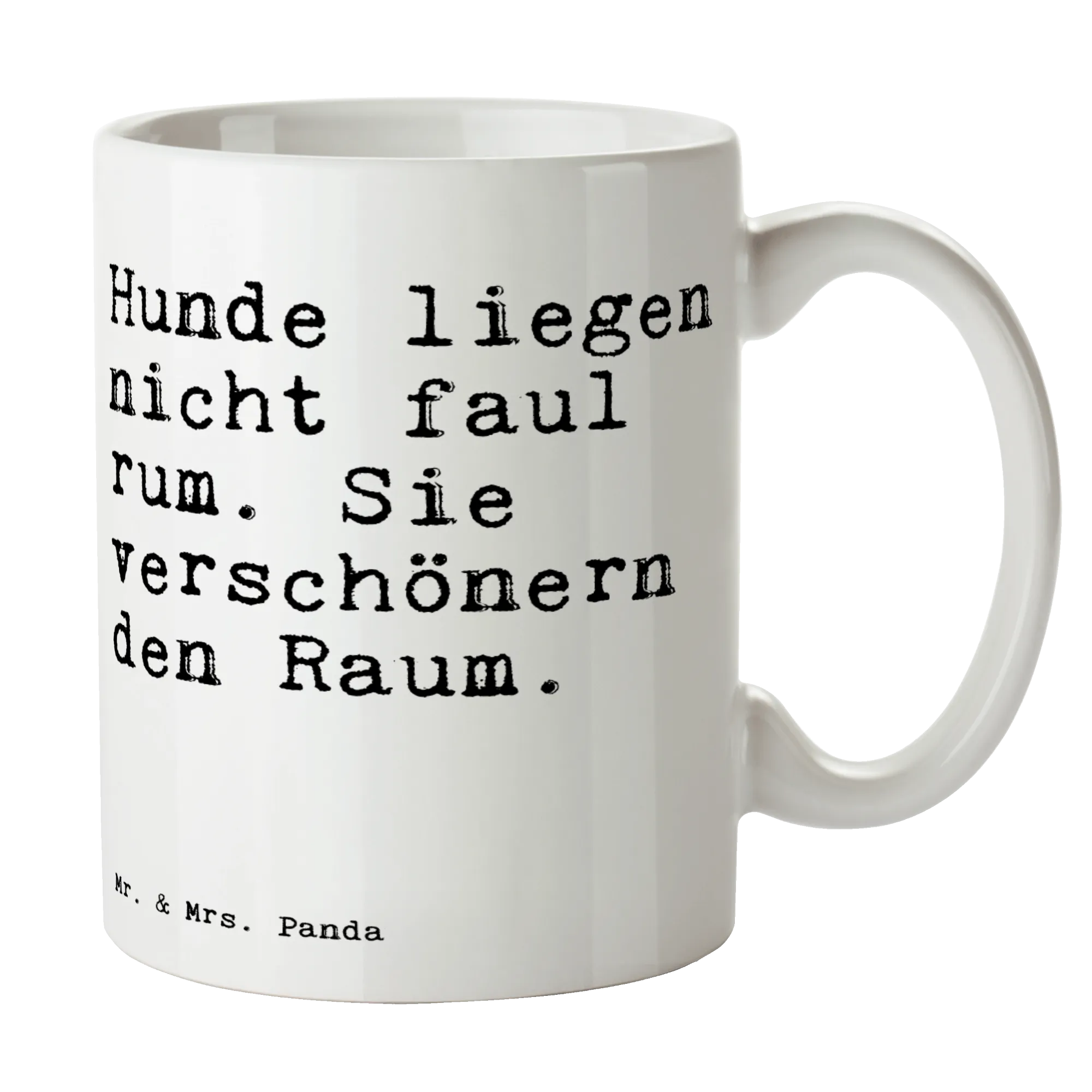 Entdecke die perfekte Tasse für Hundeliebhaber! Die wunderschöne Keramiktasse von Mr. & Mrs. Panda trägt den liebevollen Spruch 'Hunde liegen nicht faul rum. Sie verschönern den Raum.' und ist ein absolutes Must-Have für jeden Hundebesitzer oder einfach für alle, die es lieben, die Gesellschaft ihrer vierbeinigen Freunde zu genießen.