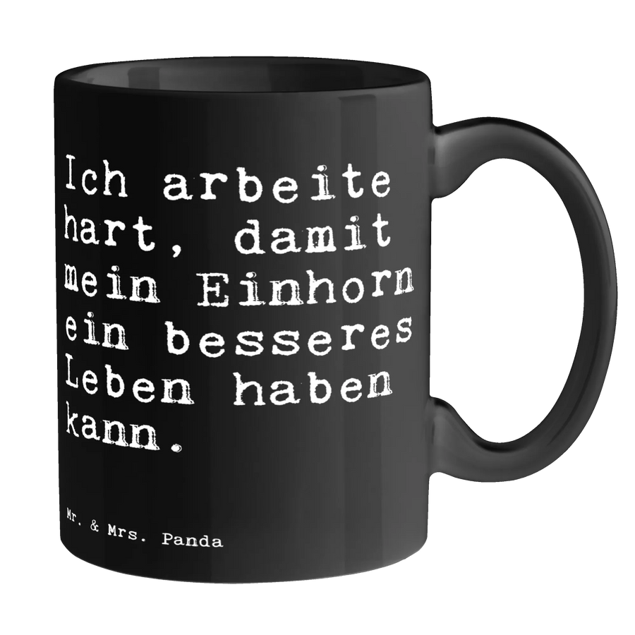 Tasse Sprüche und Zitate Ich arbeite hart, damit mein Einhorn ein besseres Leben haben kann. - Keramik Schwarz - Schwarz
