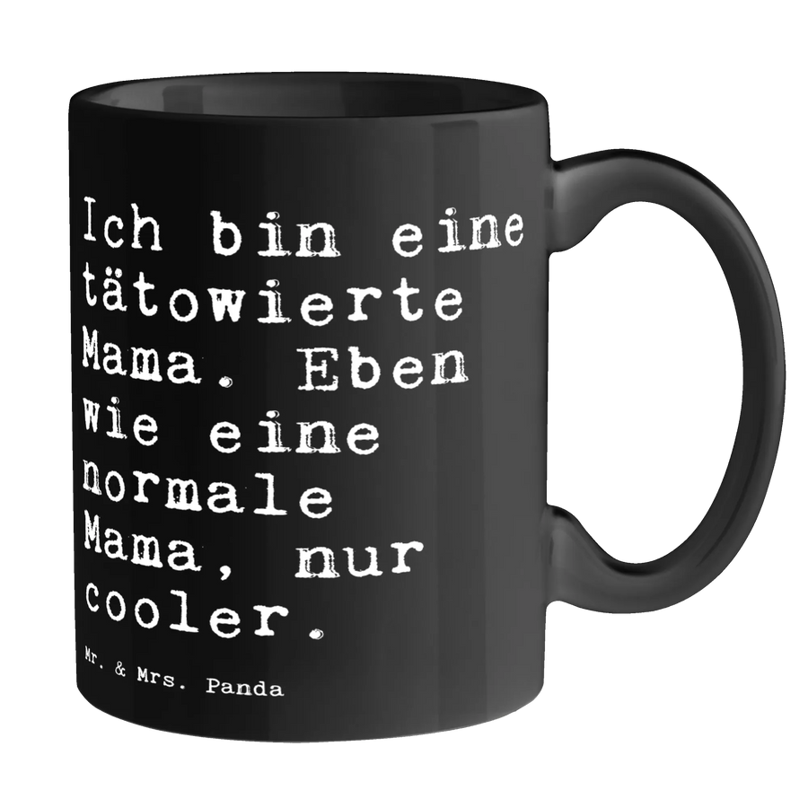 Tasse Sprüche und Zitate Ich bin eine tätowierte Mama. Eben wie eine normale Mama, nur cooler. - Keramik Schwarz - Schwarz