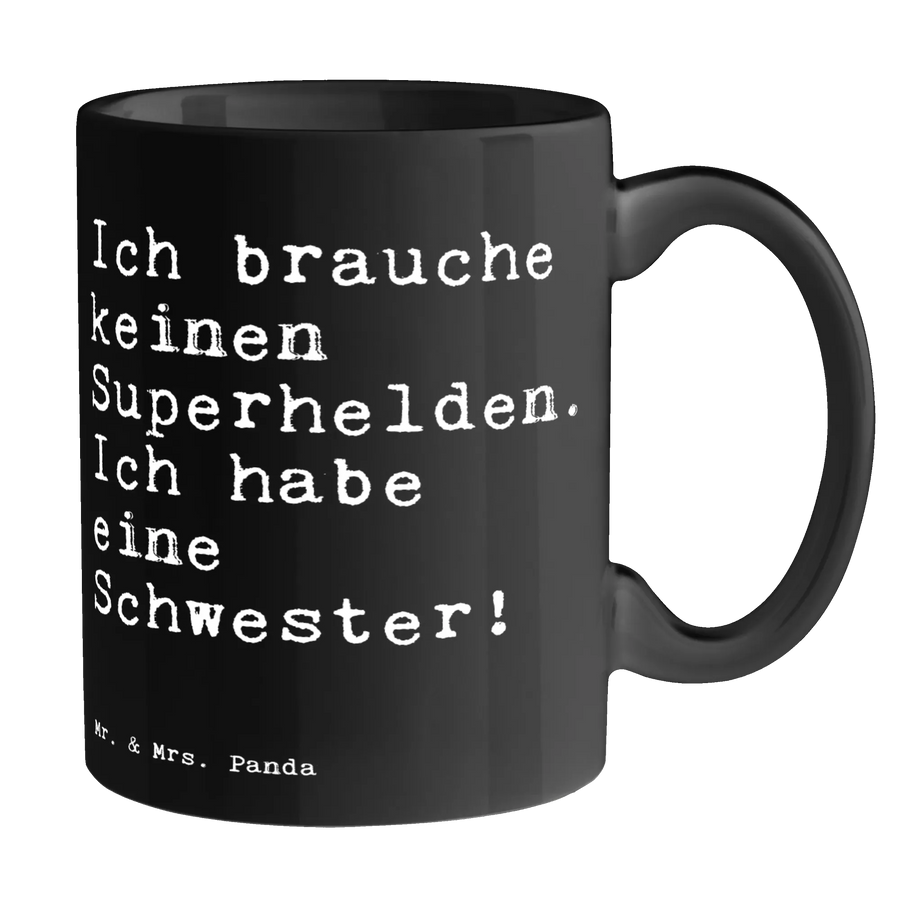 Tasse Sprüche und Zitate Ich brauche keinen Superhelden. Ich habe eine Schwester! - Keramik Schwarz - Schwarz