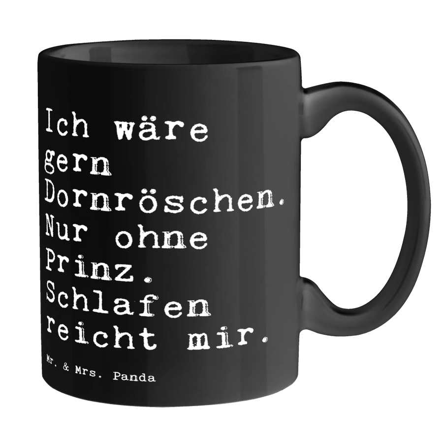 Tasse Sprüche und Zitate Ich wäre gern Dornröschen. Nur ohne Prinz. Schlafen reicht mir. - Keramik Schwarz - Schwarz
