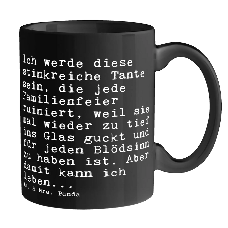 Tasse Sprüche und Zitate Ich werde diese stinkreiche Tante sein, die jede Familienfeier ruiniert, weil sie mal wieder zu tief ins Glas guckt und für jeden Blödsinn zu haben ist. Aber damit kann ich leben... - Keramik Schwarz - Schwarz