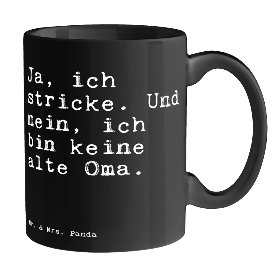 Tasse Sprüche und Zitate Ja, ich stricke. Und nein, ich bin keine alte Oma. - Keramik Schwarz - Schwarz