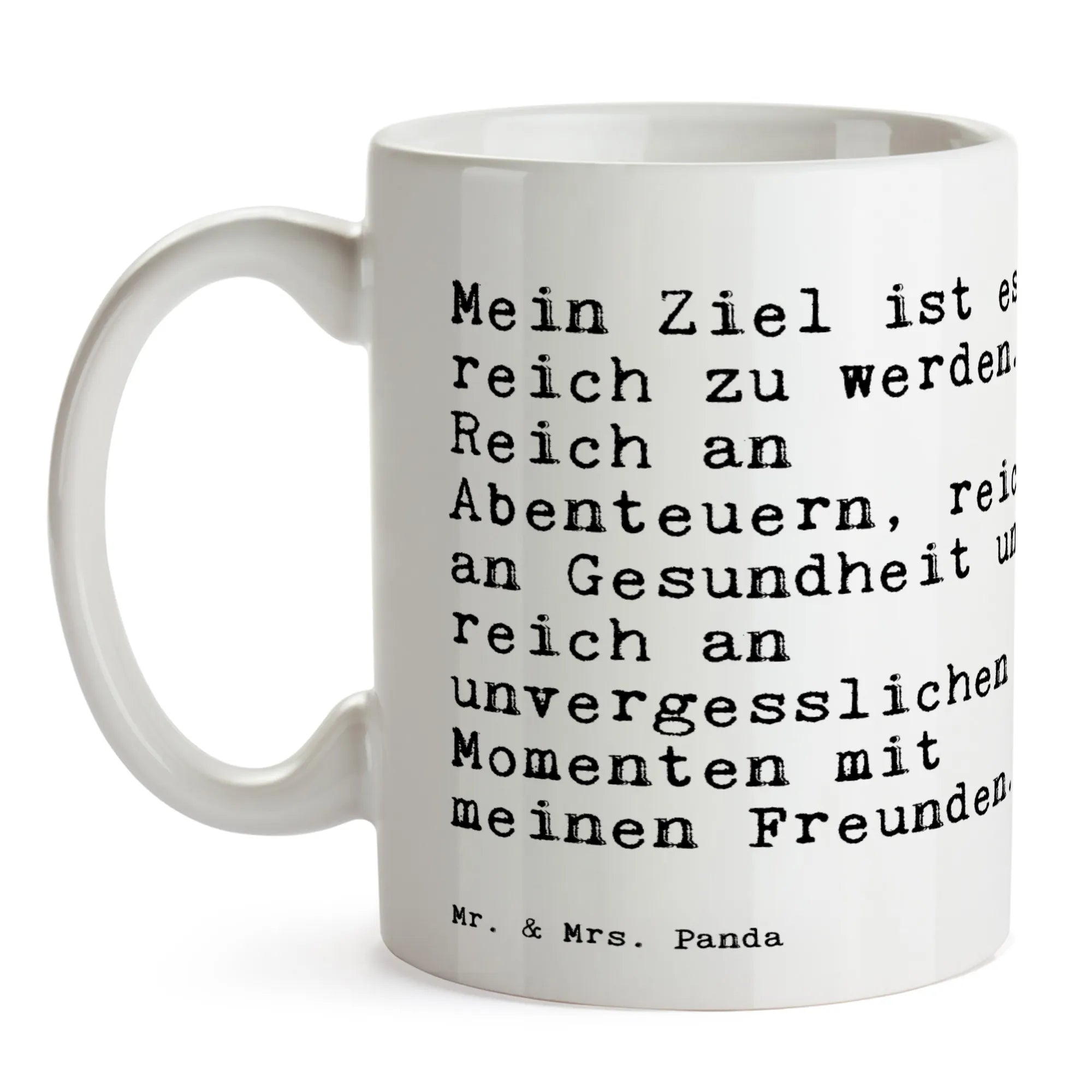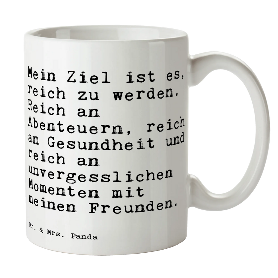 Tasse Sprüche und Zitate Mein Ziel ist es, reich zu werden. Reich an Abenteuern, reich an Gesundheit und reich an unvergesslichen Momenten mit meinen Freunden. - Keramik - Weiß