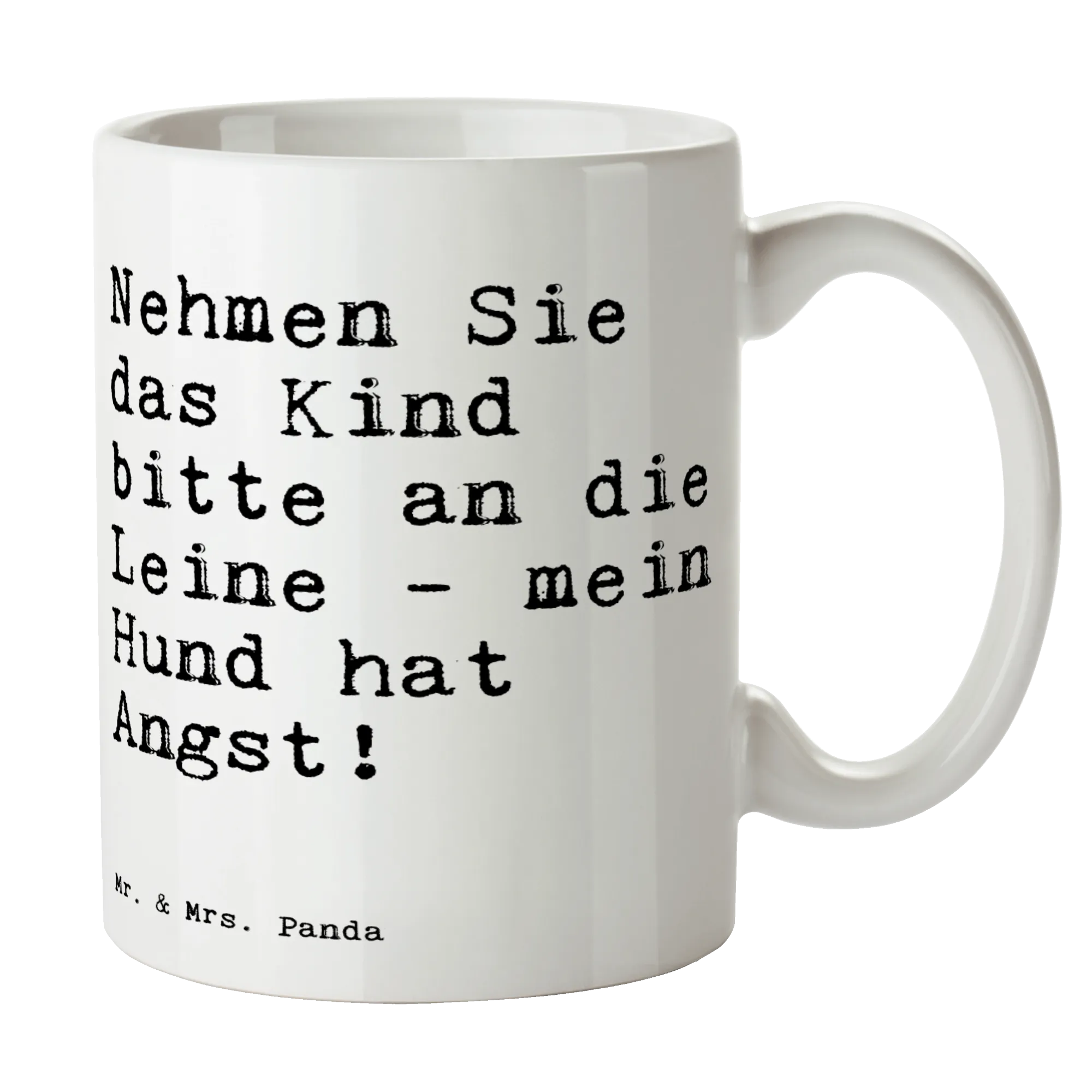 Tasse Sprüche und Zitate Nehmen Sie das Kind bitte an die Leine - mein Hund hat Angst! - Keramik Schwarz - Schwarz