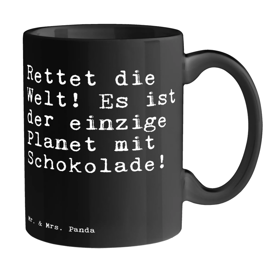 Tasse Sprüche und Zitate Rettet die Welt! Es ist der einzige Planet mit Schokolade! - Keramik Schwarz - Schwarz
