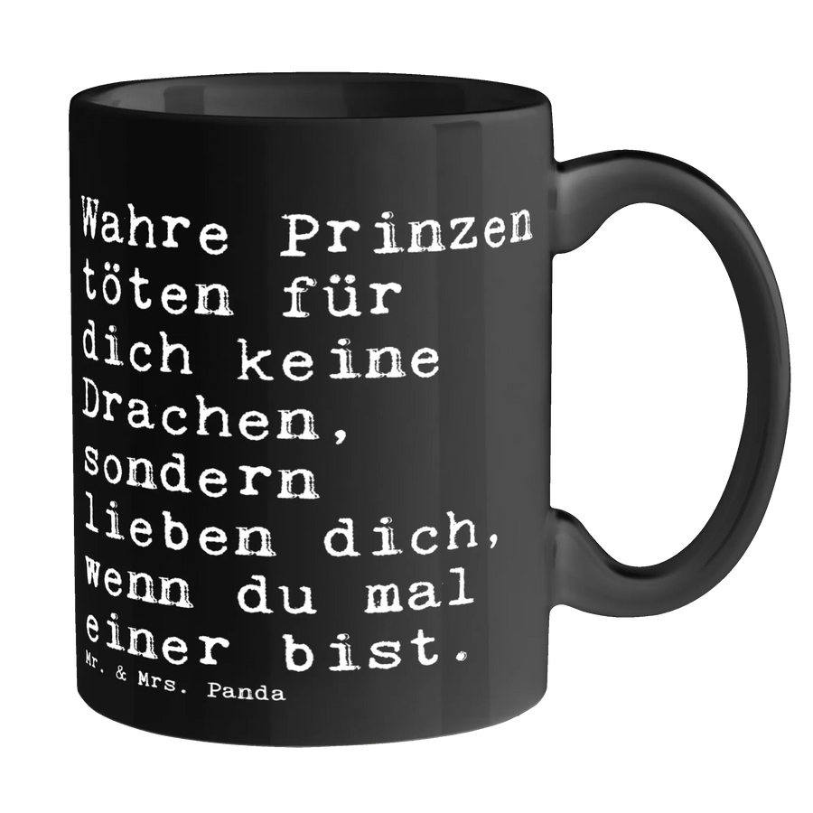 Tasse Sprüche und Zitate Wahre Prinzen töten für dich keine Drachen, sondern lieben dich, wenn du mal einer bist. - Keramik Schwarz - Schwarz