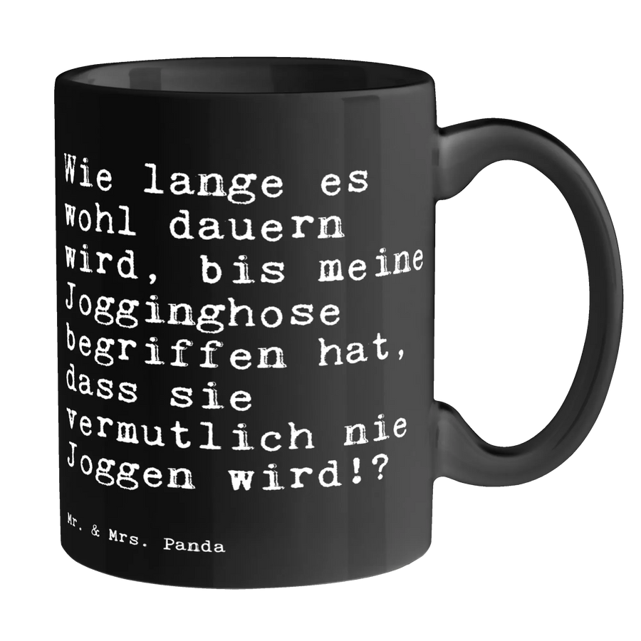 Tasse Sprüche und Zitate Wie lange es wohl dauern wird, bis meine Jogginghose begriffen hat, dass sie vermutlich nie Joggen wird!? - Keramik Schwarz - Schwarz