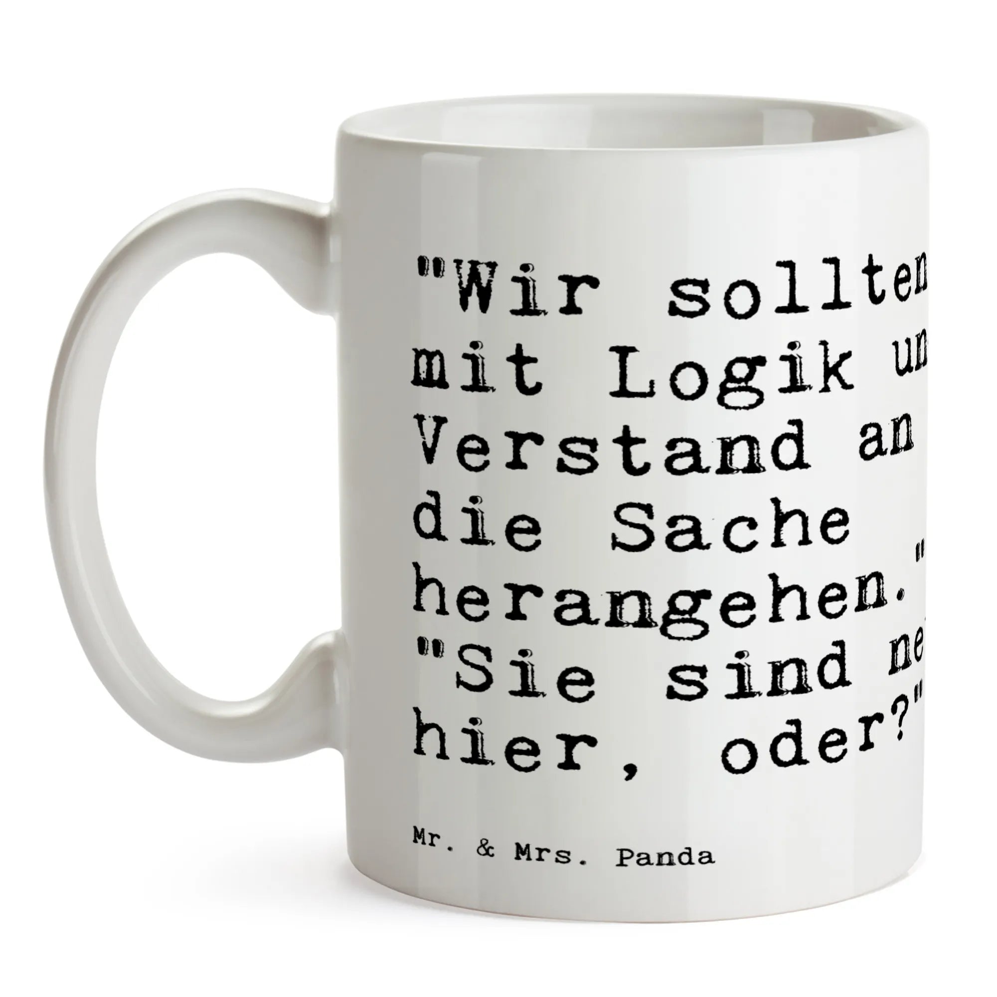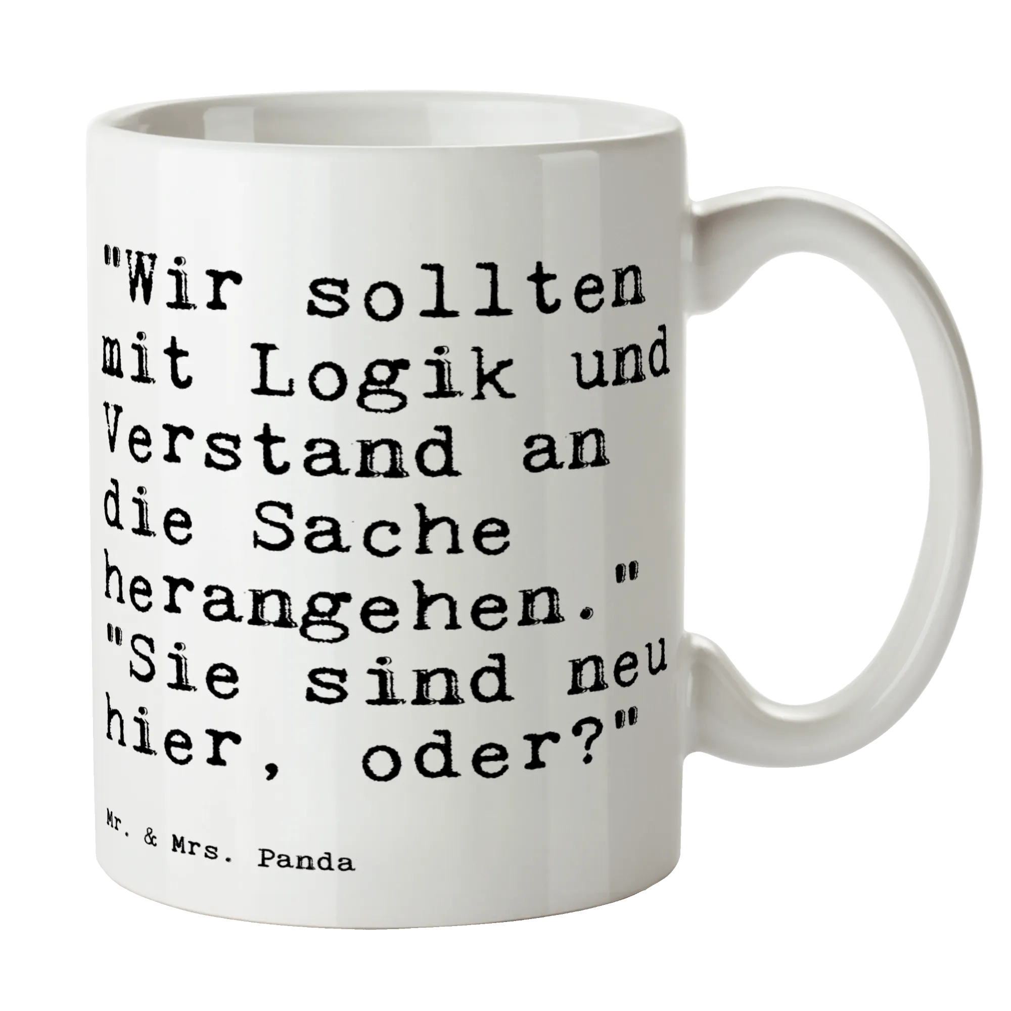 Willkommen in der zauberhaften Welt von Mr. & Mrs. Panda! Unsere wunderschöne Kaffeetasse mit dem Spruch "Wir sollten mit Logik und Verstand an die Sache herangehen. Sie sind neu hier, oder?" ist das perfekte Geschenk für all jene, die Humor und Lebensfreude schätzen.