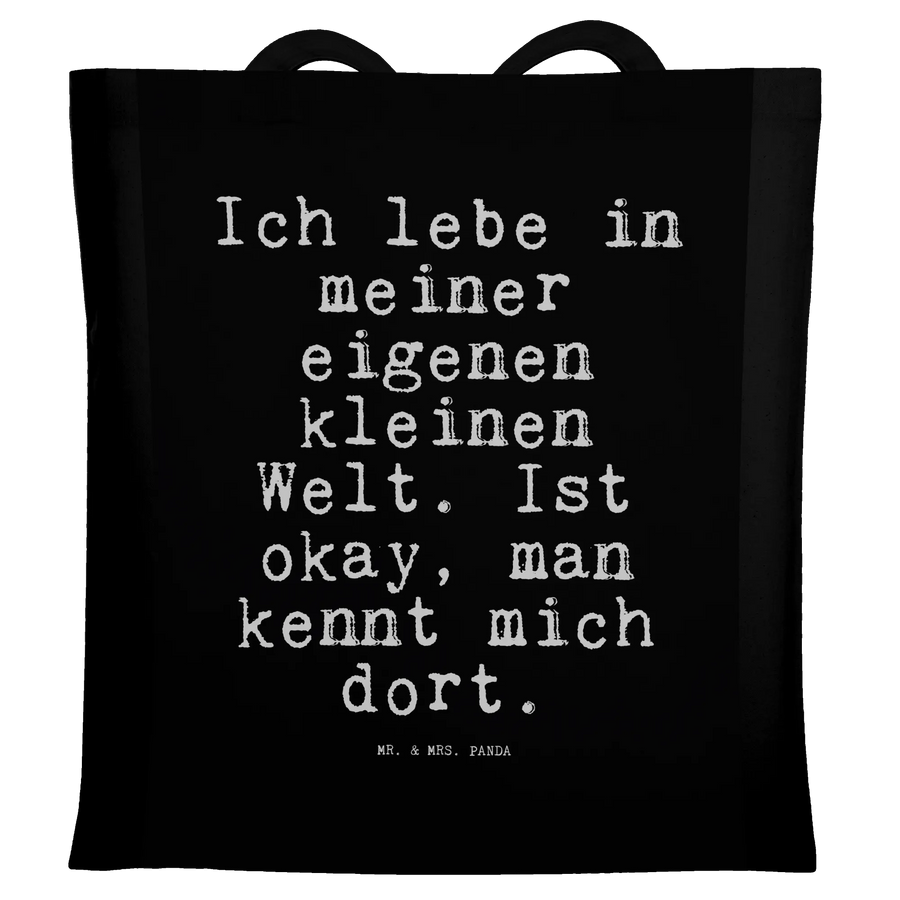 Tragetasche Sprüche und Zitate Ich lebe in meiner eigenen kleinen Welt. Ist okay, man kennt mich dort. - Schwarz