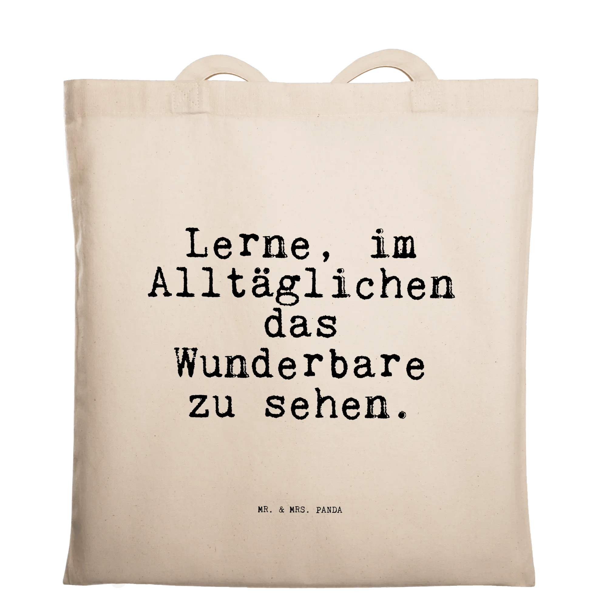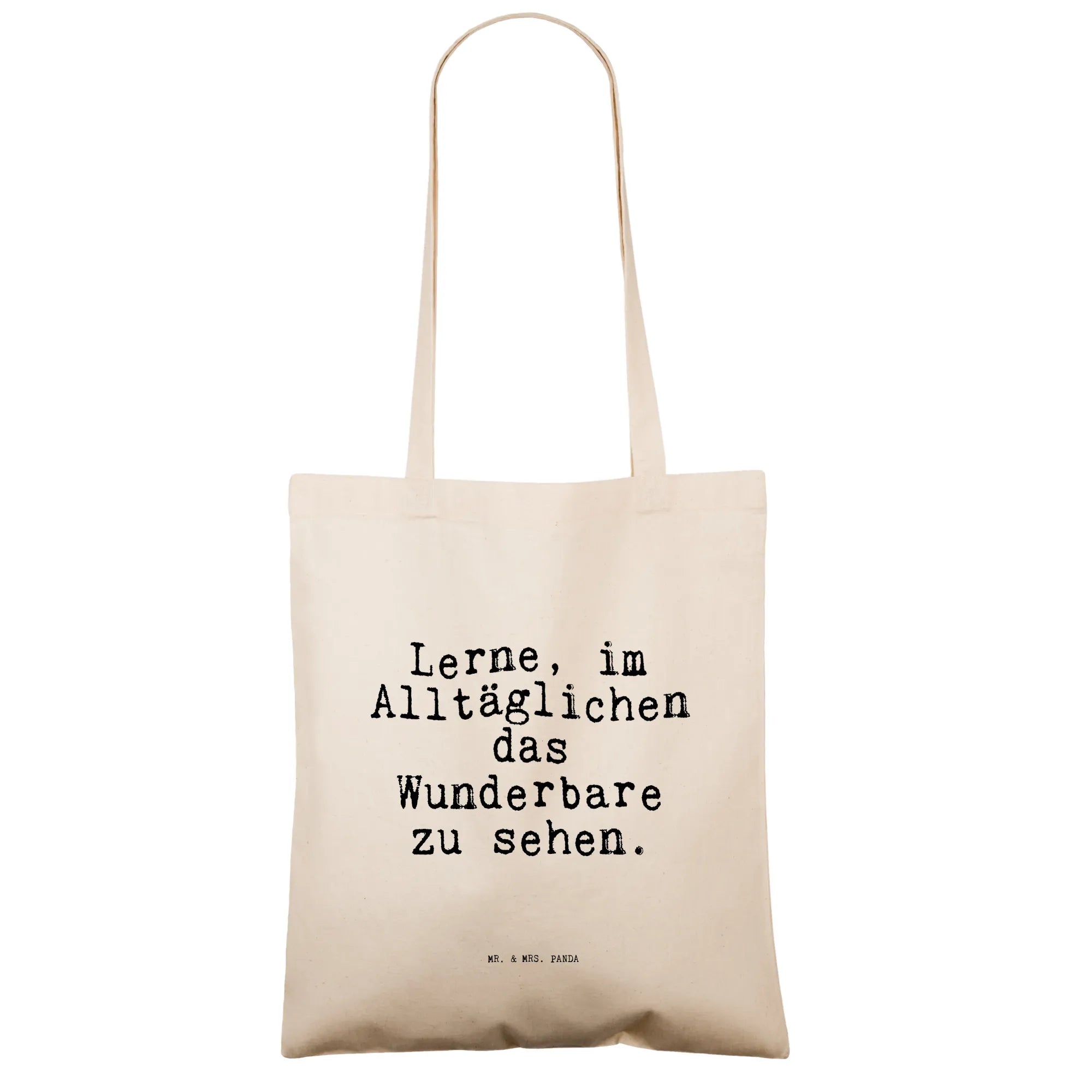 Die Tragetasche "Lerne, im Alltäglichen das Wunderbare zu sehen." von Mr. & Mrs. Panda ist nicht nur ein praktisches Accessoire, sondern auch ein Statement für einen positiven Lebensstil. Diese wunderschöne Tasche ist aus 100% Baumwolle gefertigt und bietet mit ihren Maßen von 420 mm x 380 mm ausreichend Platz für alles, was Du im Alltag benötigst - sei es beim Einkaufen, am Strand oder für einen gemütlichen Tag im Park. Die Tragetasche besticht durch einen hochwertigen Druck, der mit dem inspirierenden Spruch versehen ist, der Dich daran erinnert, die kleinen Wunder des Lebens zu entdecken.