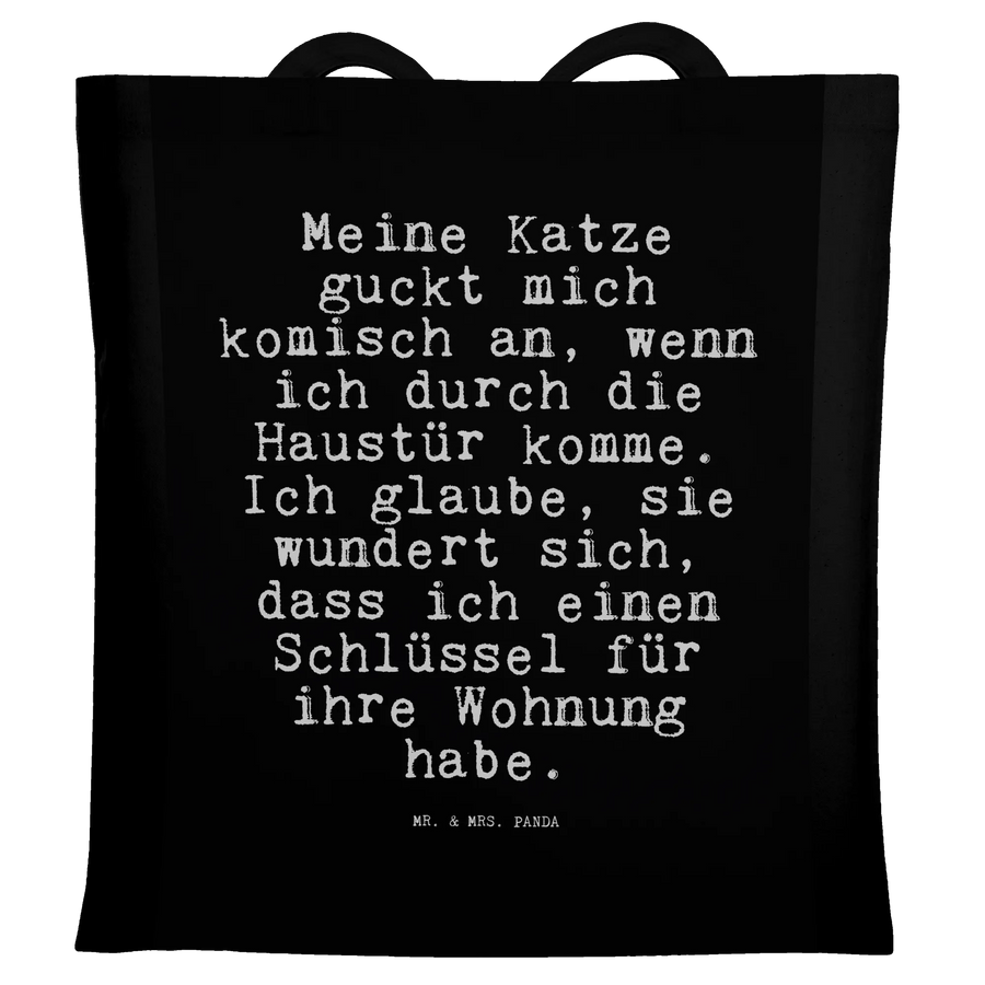 Tragetasche Sprüche und Zitate Meine Katze guckt mich komisch an, wenn ich durch die Haustür komme. Ich glaube, sie wundert sich, dass ich einen Schlüssel für ihre Wohnung habe. - Schwarz