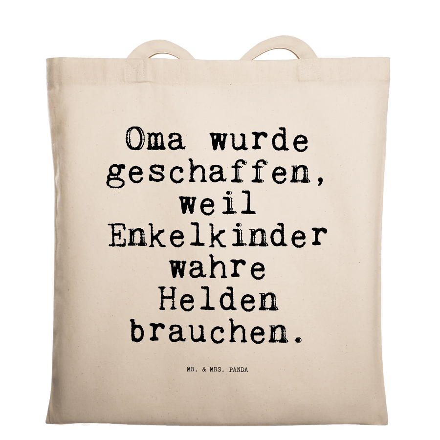 Diese wunderschöne Tragetasche von Mr. & Mrs. Panda ist das perfekte Geschenk für alle Enkelkinder, die ihrer Oma zeigen möchten, wie sehr sie sie lieben. Der liebevolle Spruch 'Oma wurde geschaffen, weil Enkelkinder wahre Helden brauchen.' verleiht dieser Tasche eine ganz besondere Note und macht sie zu einem einzigartigen Accessoire.