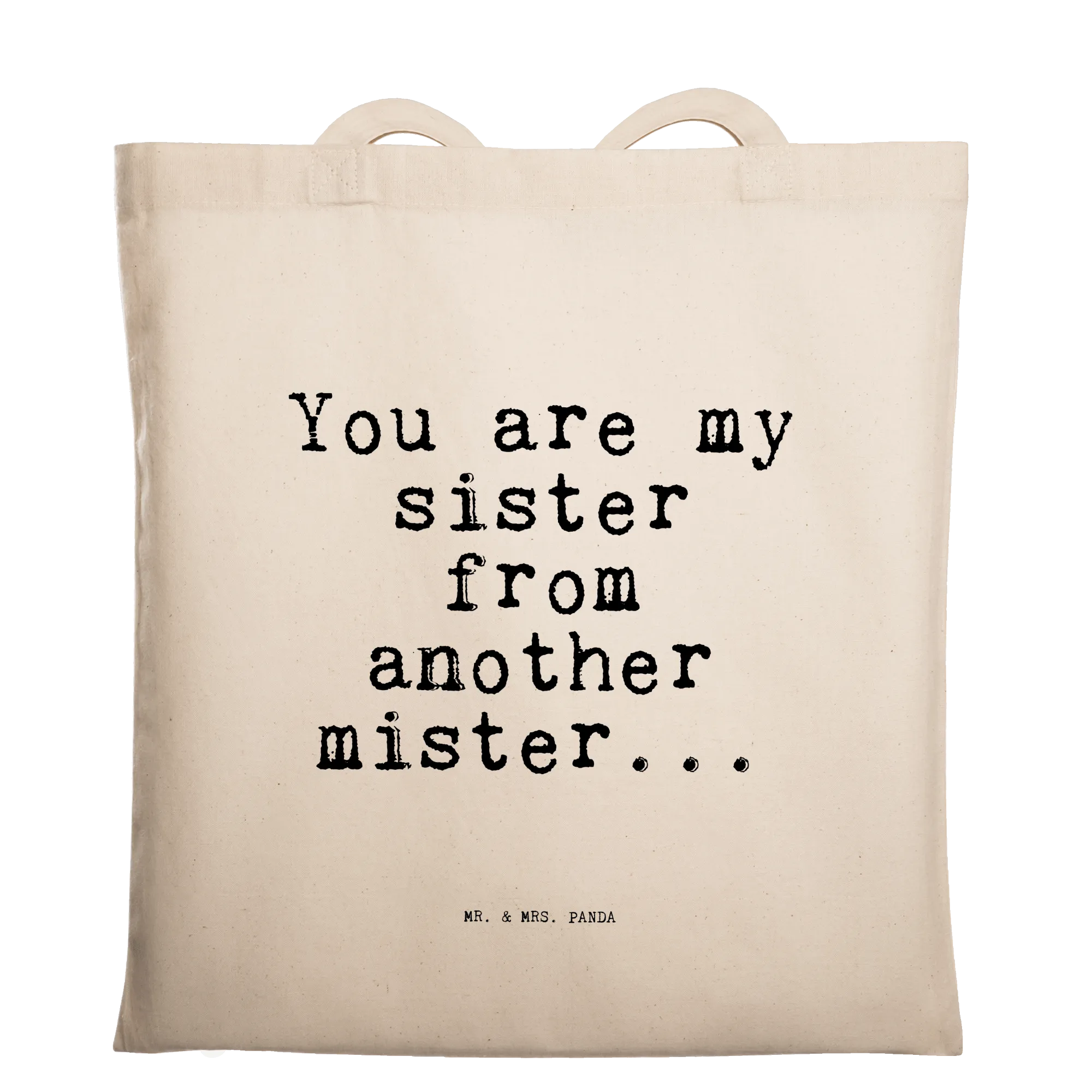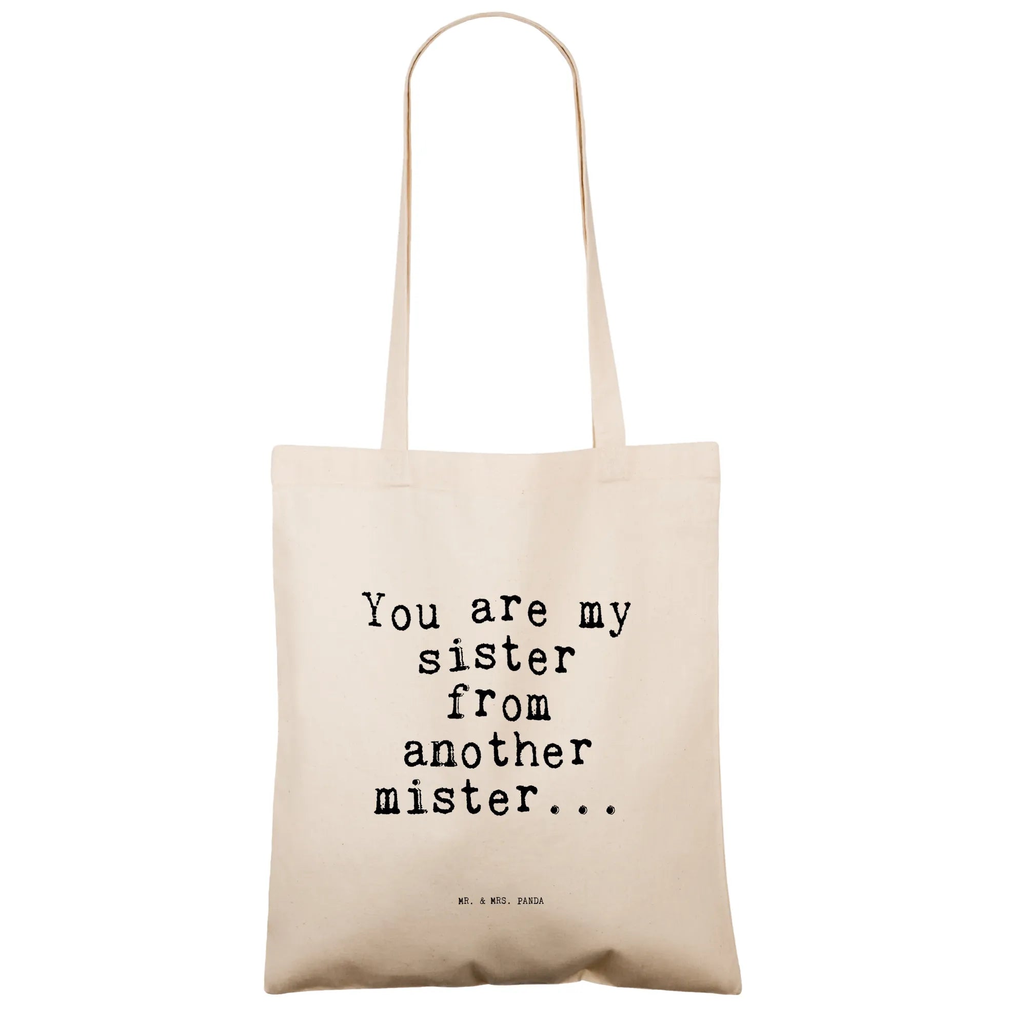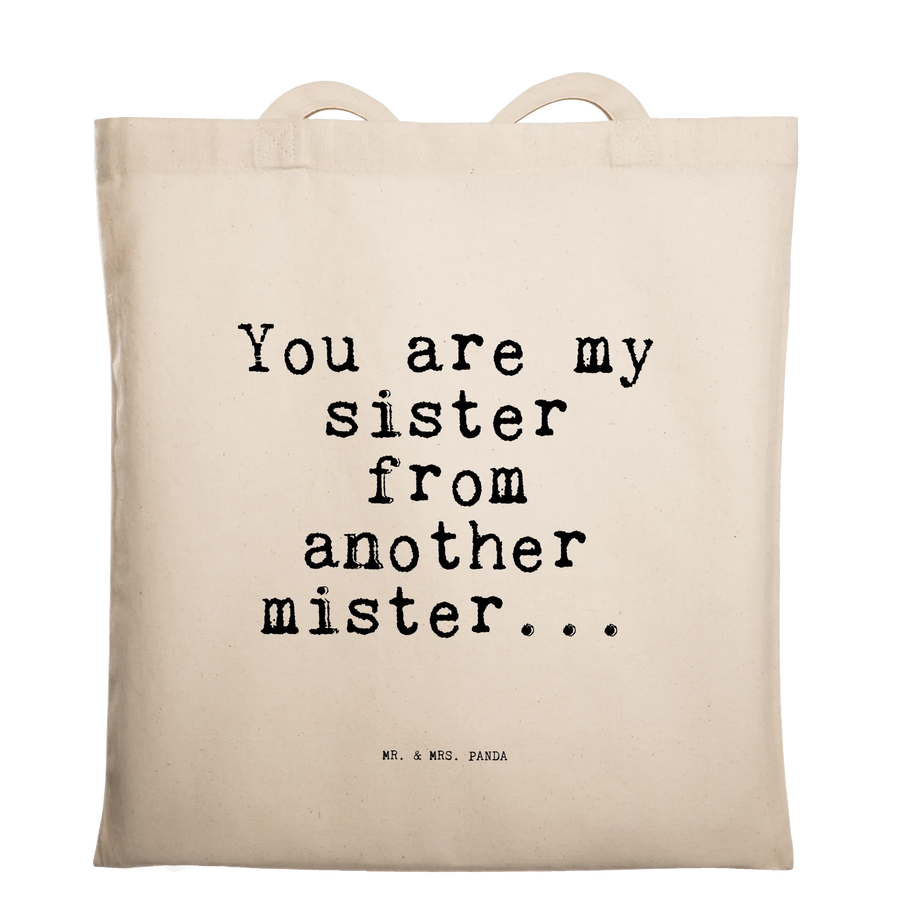 Die Tragetasche "You are my sister from another mister..." von Mr. & Mrs. Panda ist das perfekte Geschenk für Deine beste Freundin, Schwester oder die Frau, die Dir besonders am Herzen liegt. Diese liebevolle Tragetasche bringt nicht nur ein Lächeln auf das Gesicht, sondern ist auch funktional und stylisch zugleich.