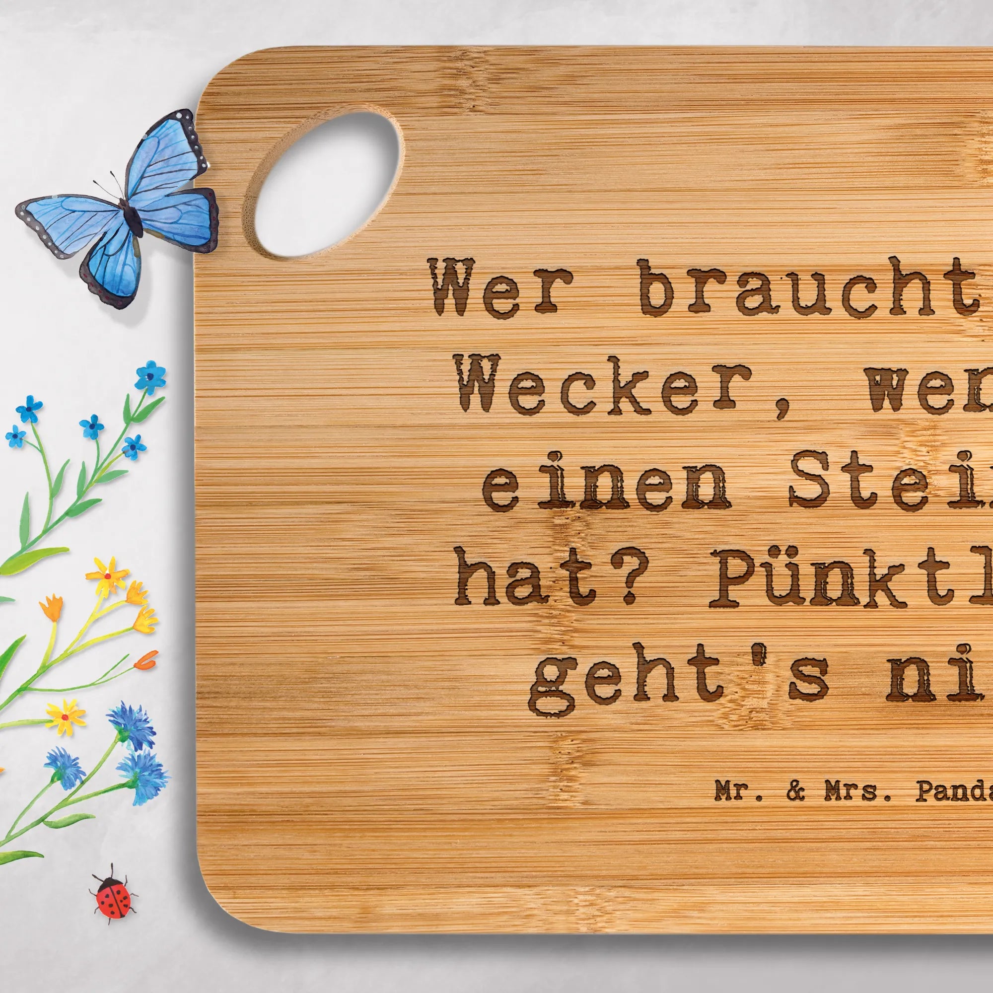 Du suchst ein Geschenk, das praktisch ist und trotzdem Herz besitzt? Unser Holzbrett mit dem frechen Spruch "Wer braucht einen Wecker, wenn man einen Steinbock hat? Pünktlicher geht's nicht!" ist genau das Richtige. Das handgezeichnete Motiv von Mrs. Panda macht dieses Schneidebrett Steinbock zum Hingucker in jeder Küche. 🐐✨