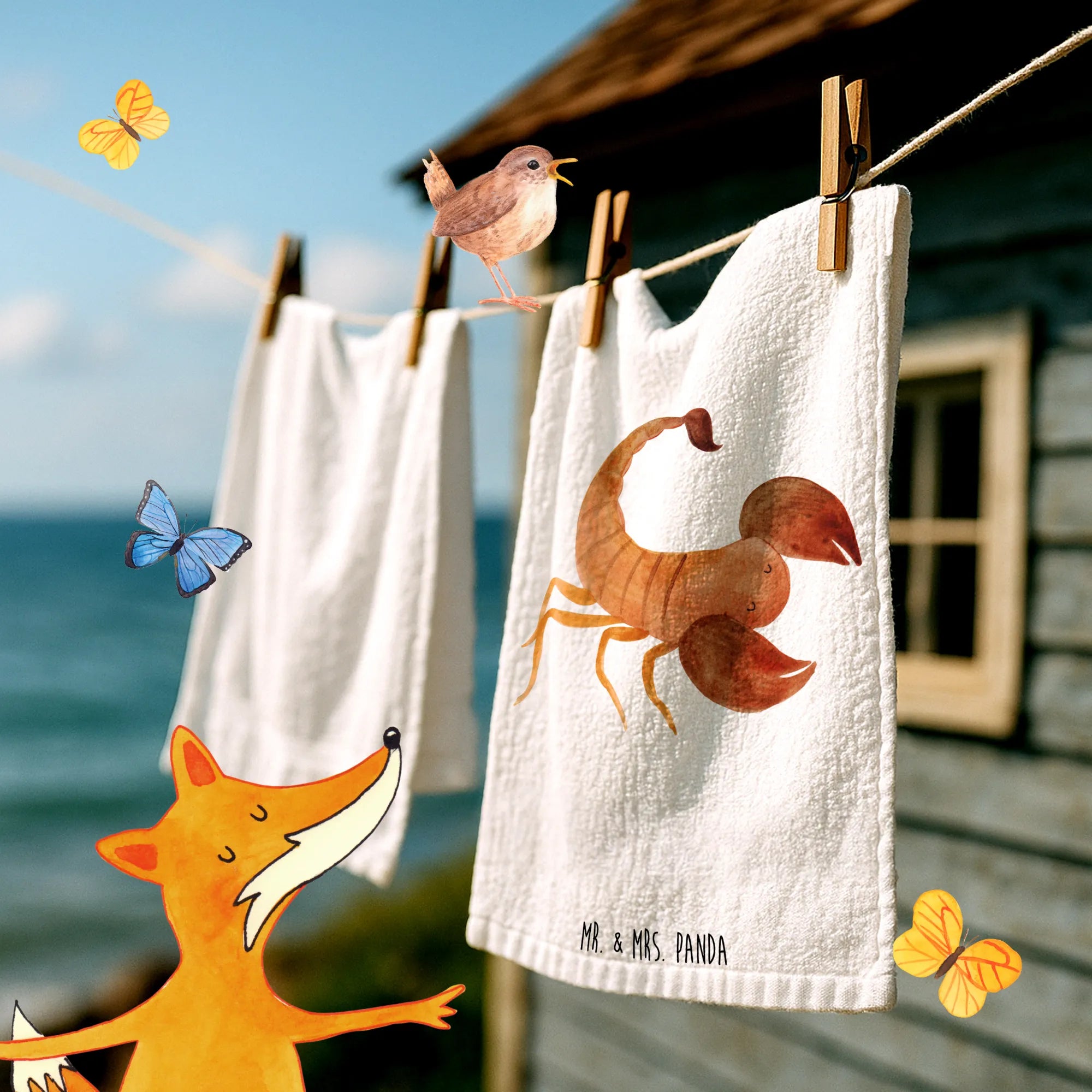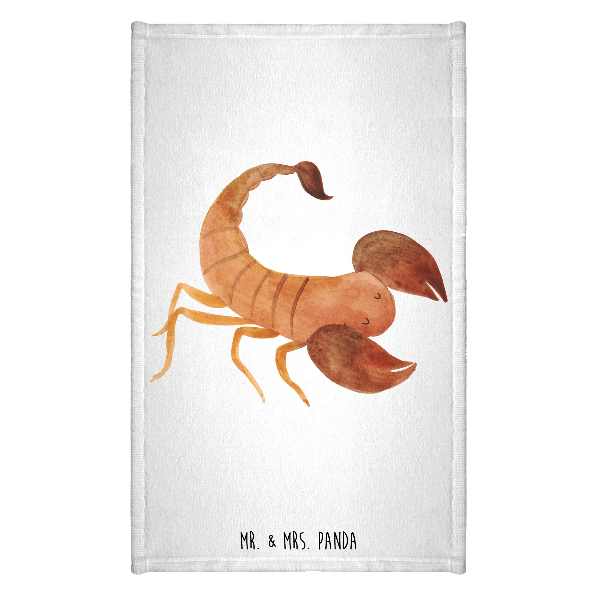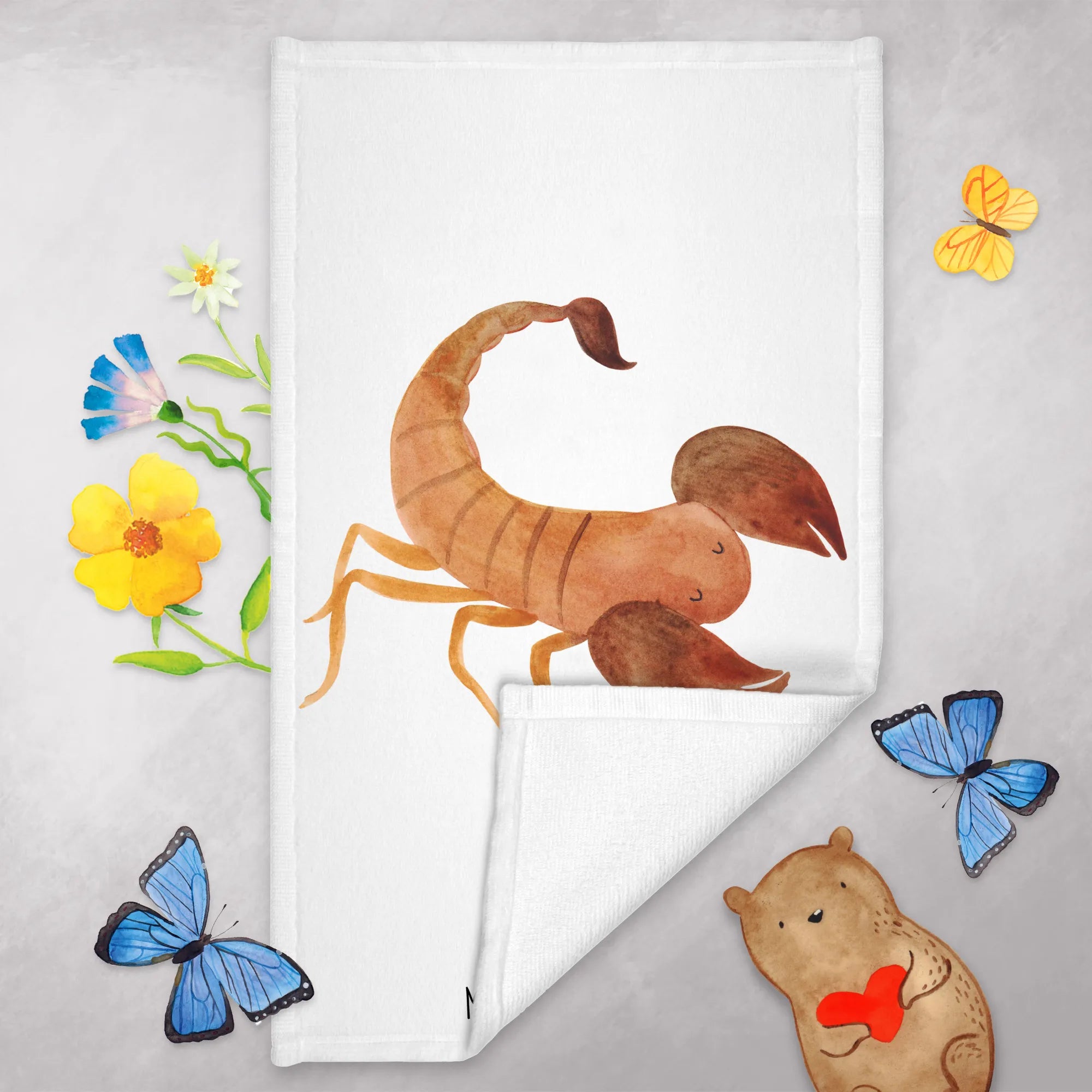 Das wunderschöne Gästehandtuch von Mr. & Mrs. Panda im Design des Sternzeichens Skorpion ist nicht nur ein praktisches Badaccessoire, sondern auch ein freundliches und liebevolles Geschenk! Mit den Maßen von 300 mm x 500 mm passt es perfekt in jedes Badezimmer. Dieses Handtuch ist aus einer flauschigen Baumwollmischung gefertigt, die extra weich ist und sich sanft auf der Haut anfühlt.