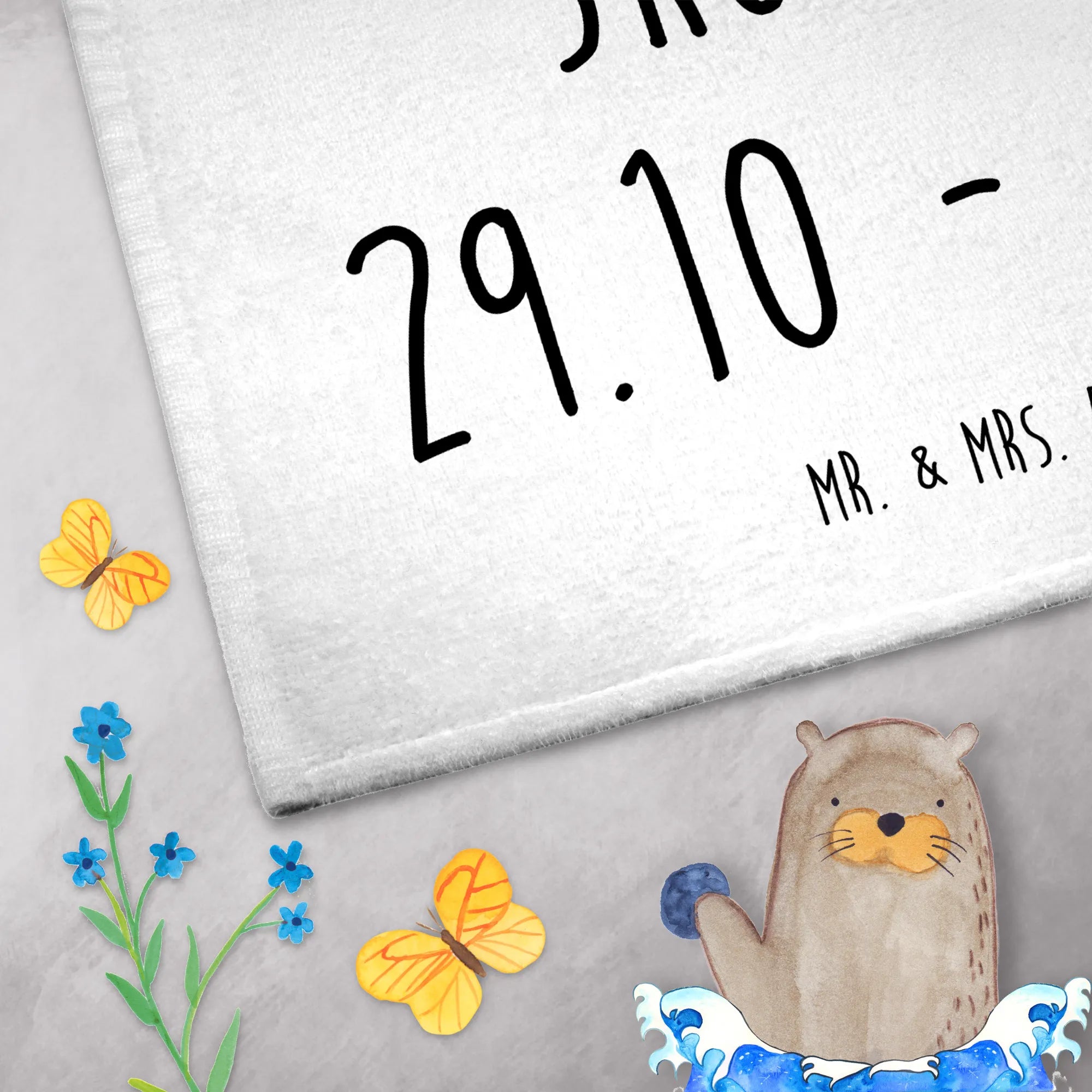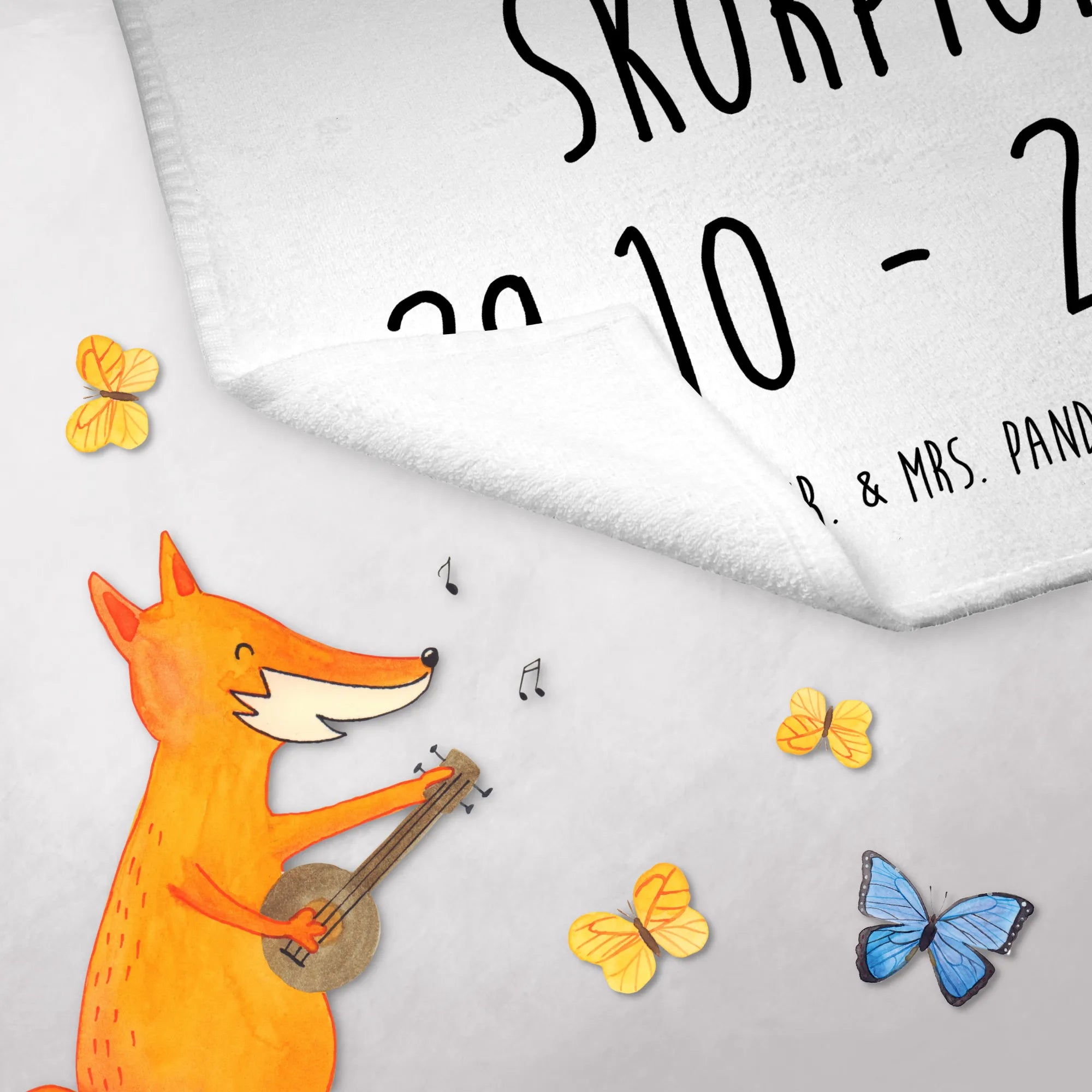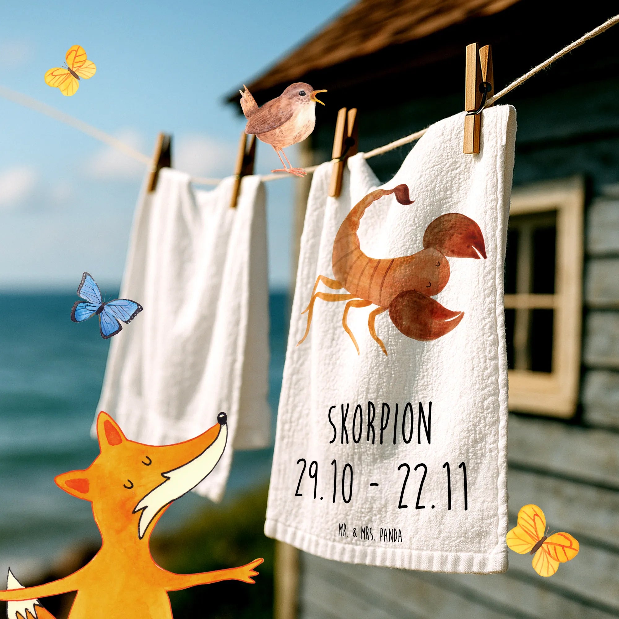 Das wunderschöne Gästehandtuch von Mr. & Mrs. Panda im Design des Sternzeichens Skorpion ist nicht nur ein praktisches Badaccessoire, sondern auch ein freundliches und liebevolles Geschenk! Mit den Maßen von 300 mm x 500 mm passt es perfekt in jedes Badezimmer. Dieses Handtuch ist aus einer flauschigen Baumwollmischung gefertigt, die extra weich ist und sich sanft auf der Haut anfühlt.