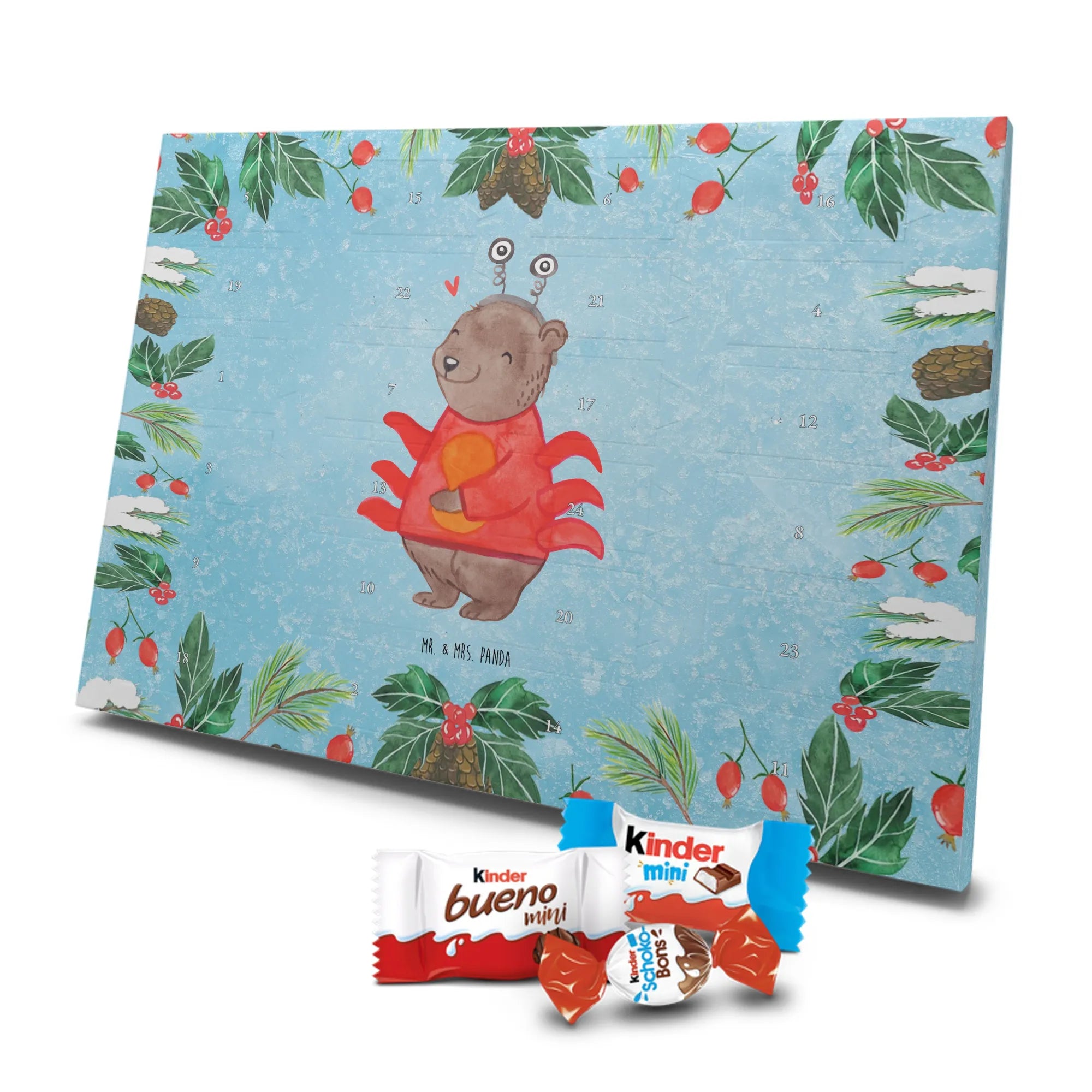 Verschenke warme Vorfreude mit unserem liebevoll gestalteten Schokoladen Adventskalender aus der Sternzeichen-Kollektion. Das handgezeichnete Motiv zeigt einen niedlichen Bären im Krebs-Kostüm – farbenfroh, humorvoll und voller Charme. Hinter 24 Türchen verstecken sich köstliche Überraschungen, gefüllt mit kinder® Schokolade (kinder® Schoko-Bons, kinder® Bueno mini und kinder® Schokolade mini). So wird jeder Adventstag zu einem kleinen Highlight.
