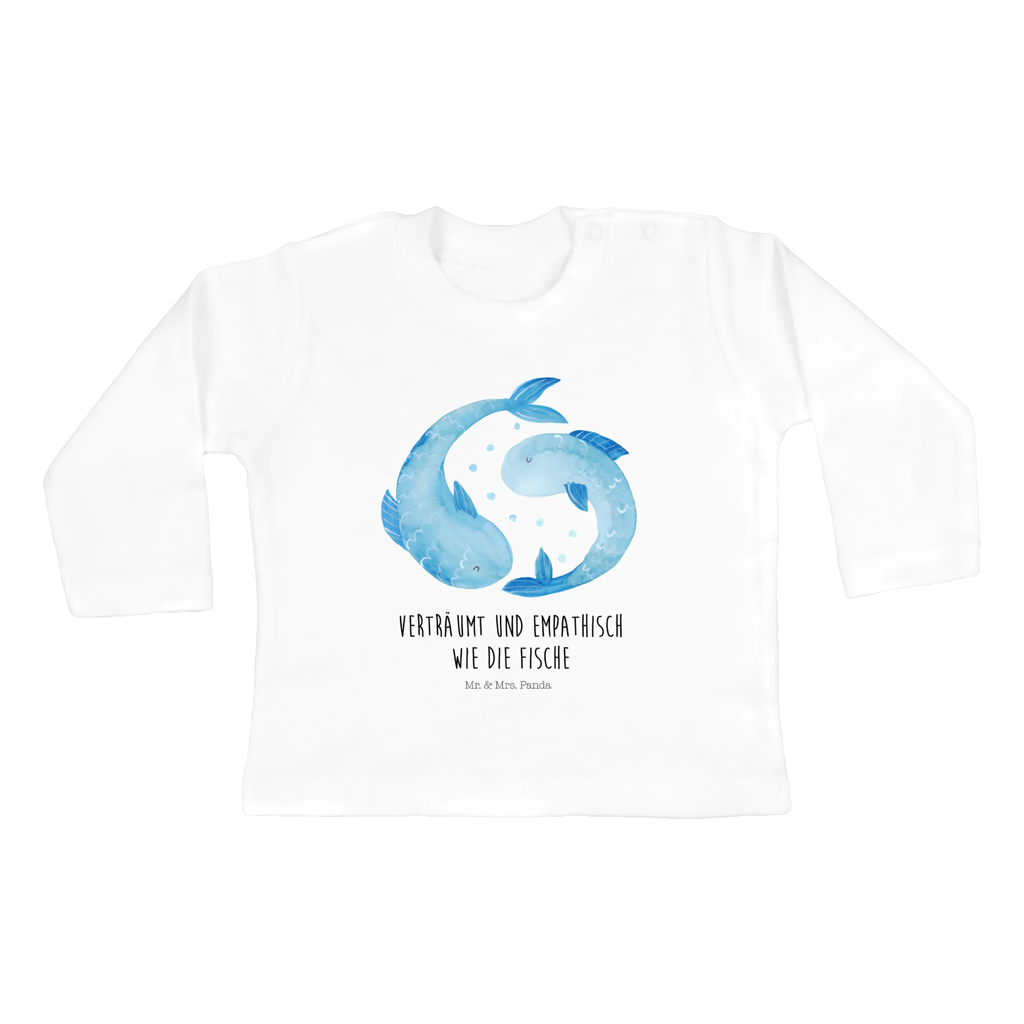 Entdecke das wunderschöne 12-18 Monate Baby Langarmshirt mit dem zauberhaften Sternzeichen Fische Motiv von Mr. & Mrs. Panda. Unsere Fische schwimmen am liebsten mit dem Strom, stets bereit für neue Abenteuer und Freude!