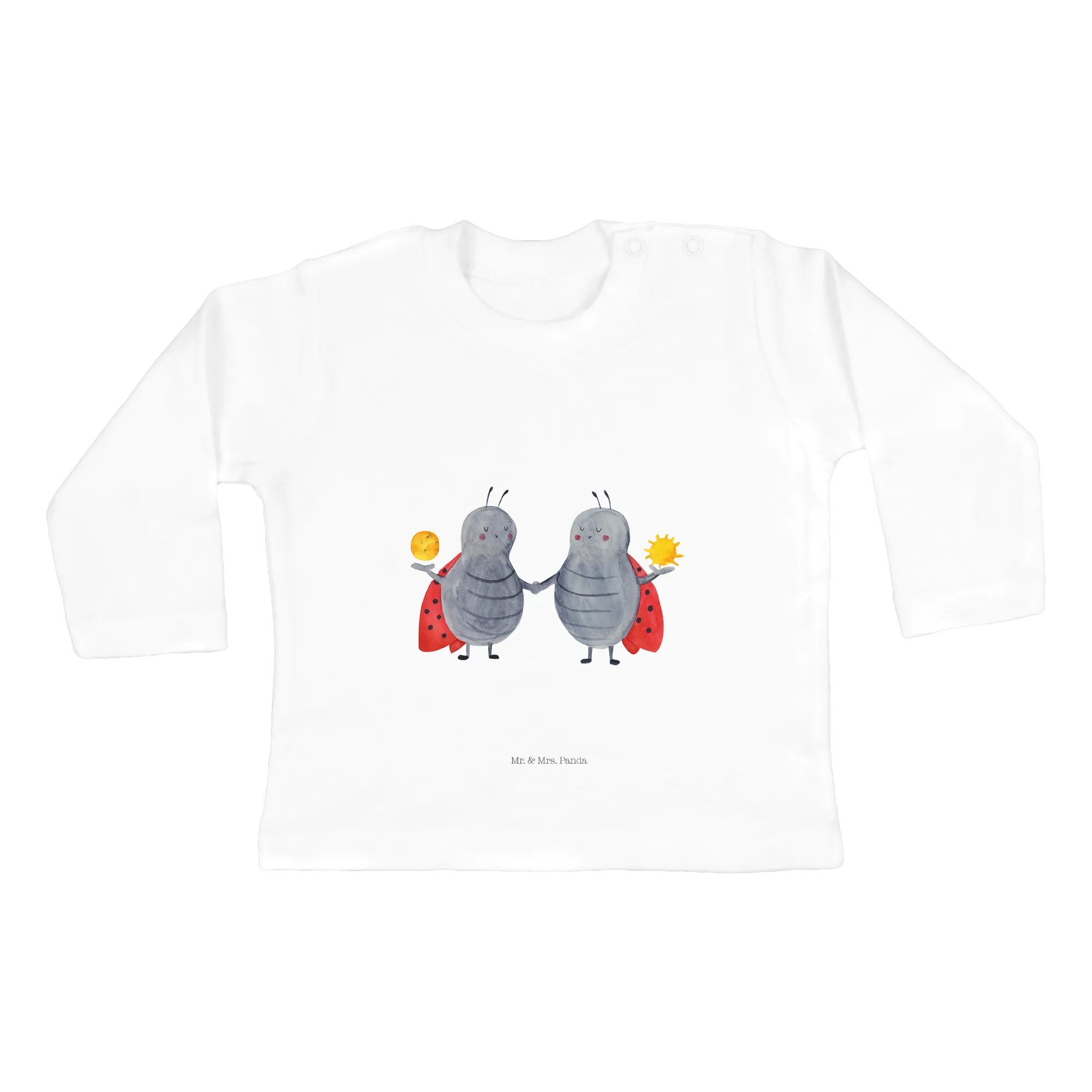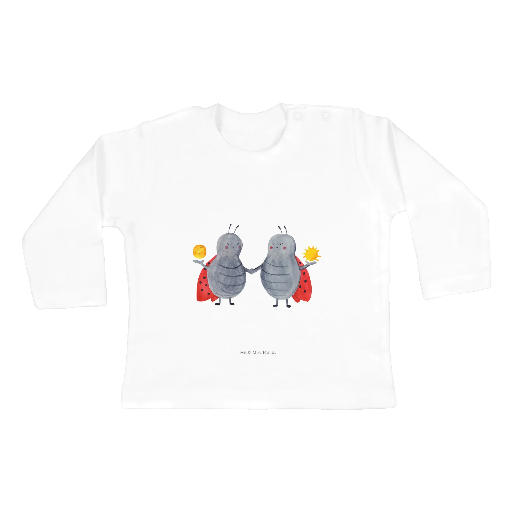 Die Motive auf dem Shirt erzählen die Geschichte eines wahrhaft einmaligen Zwillings, der aufgeschlossen und begeistert ist. Die süßen Marienkäfer repräsentieren die Zwillingskinder, die häufig voller Lebensfreude und Unbeschwertheit stecken. Die liebevoll handgezeichneten Designs von Mr. & Mrs. Panda bringen nicht nur Augen zum Leuchten, sondern können ebenfalls als wundervolles Erinnerungsstück in den Kleiderschrank Deines Babys einziehen.