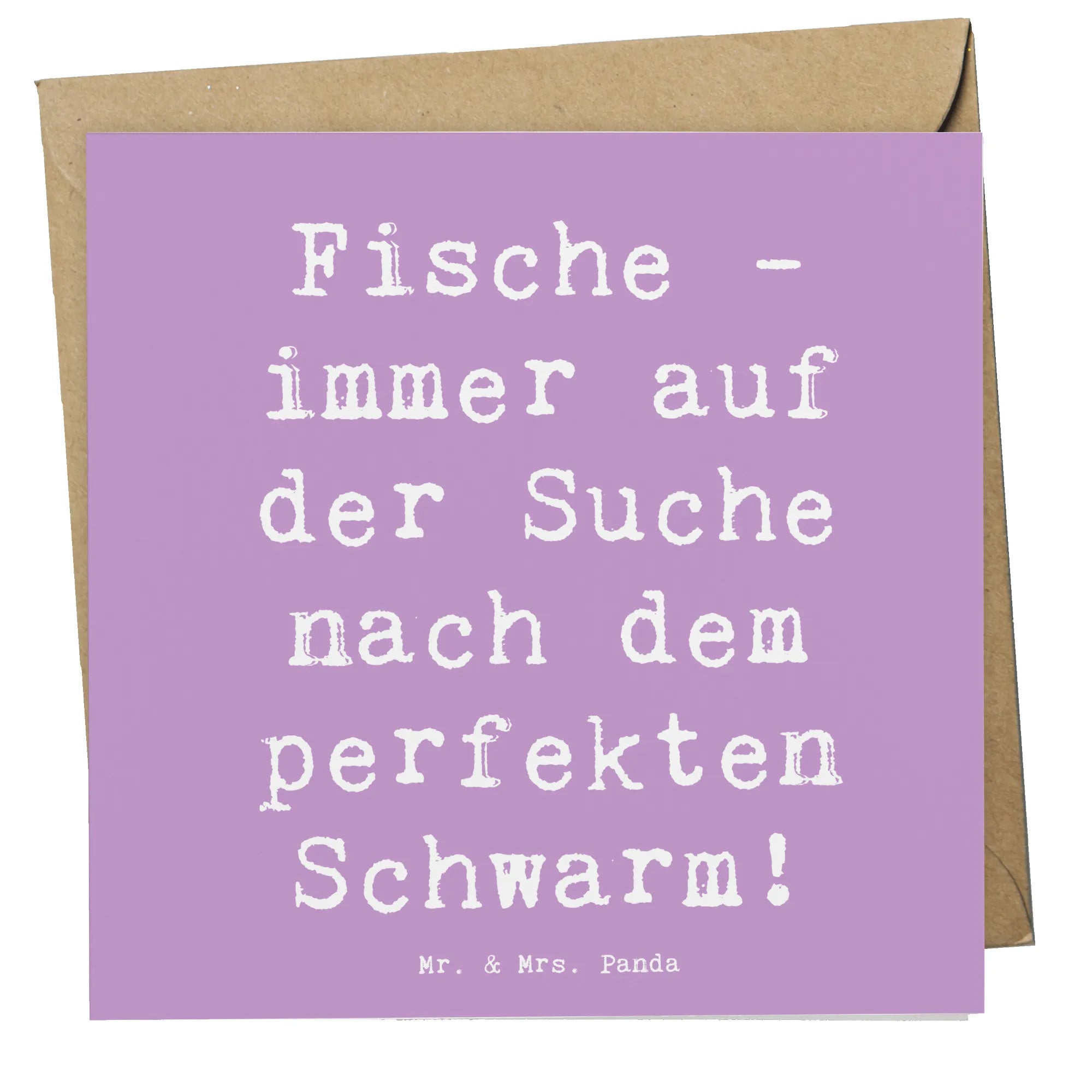 Die Karte hat eine matte Innenseite, die ideal zum Beschriften ist, und die Vorderseite ist mit dem charmanten Spruch "Fische - immer auf der Suche nach dem perfekten Schwarm!" bedruckt. Egal ob als Geburtstagskarte, Hochzeitskarte oder einfach nur, um jemandem eine kleine Freude zu machen – diese Karte ist perfekt für jede Gelegenheit.