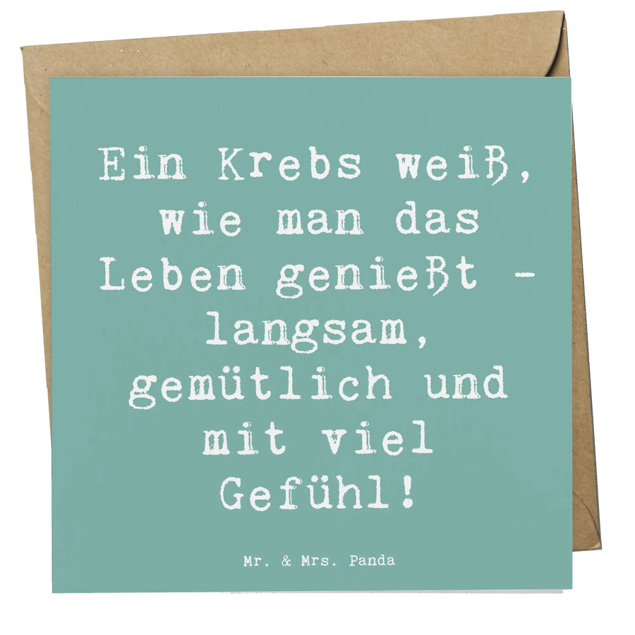 Die Deluxe Karte Krebs von Mr. & Mrs. Panda ist das perfekte Geschenk für alle, die im Zeichen des Krebses geboren sind. Mit einem liebevollen Spruch "Ein Krebs weiß, wie man das Leben genießt - langsam, gemütlich und mit viel Gefühl!" wird diese Karte zu einem echten Hit bei Freunden und Familie.