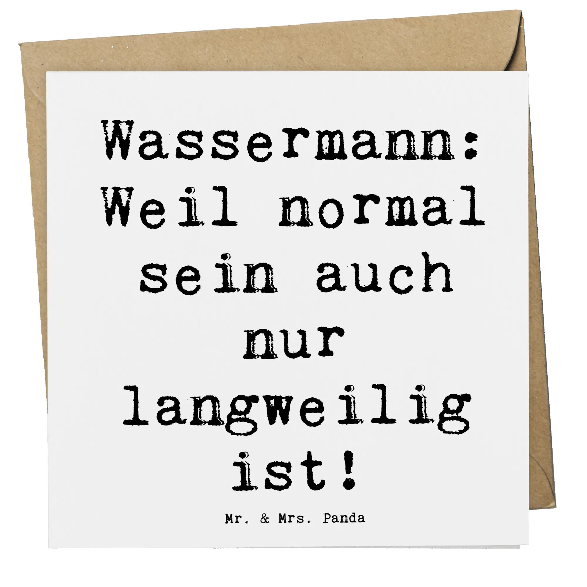 Unsere Deluxe Karte Wassermann aus der zauberhaften Sternzeichen-Kollektion von Mr. & Mrs. Panda ist das perfekte Geschenk für jeden Wassermann-Geburtstagskind! Mit einem liebevoll gestalteten Design und dem Spruch "Wassermann: Weil normal sein auch nur langweilig ist!" bringt die Karte einen Hauch von Freude und Persönlichkeit in jede Botschaft. Diese hochwertige Grußkarte misst 140 mm x 140 mm und besteht aus edlem 300 Gramm Karton, der nicht nur optisch ansprechend, sondern auch haptisch ein Genuss ist.