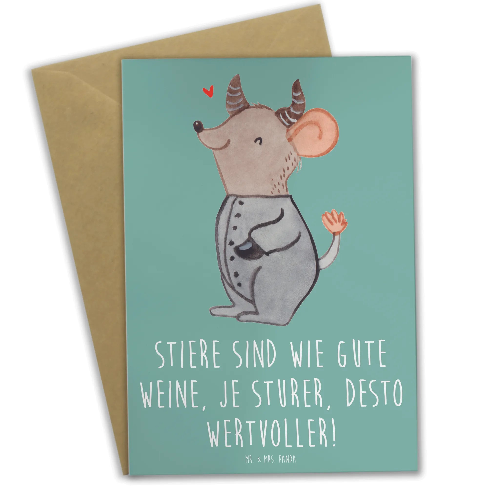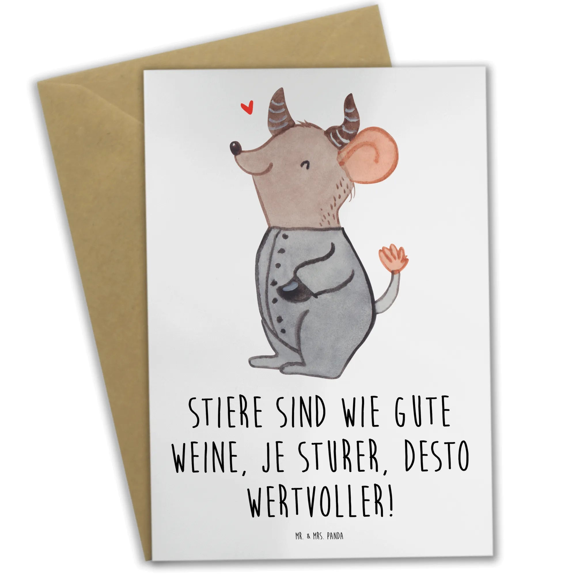 Du suchst das perfekte Geschenk für einen Stier-Geburtstagskind oder vielleicht einfach für einen lieben Freund, der das Sternzeichen Stier hat? Dann ist die wunderschöne Grußkarte von Mr. & Mrs. Panda genau das, was du brauchst! Diese einzigartige Karte ist nicht nur mit niedlichen Motiven, sondern auch mit einem lustigen Spruch versehen: "Stiere sind wie gute Weine, je sturer, desto wertvoller!" Diese Botschaft, kombiniert mit dem liebevollen Design, wird das Herz des Beschenkten höher schlagen lassen.
